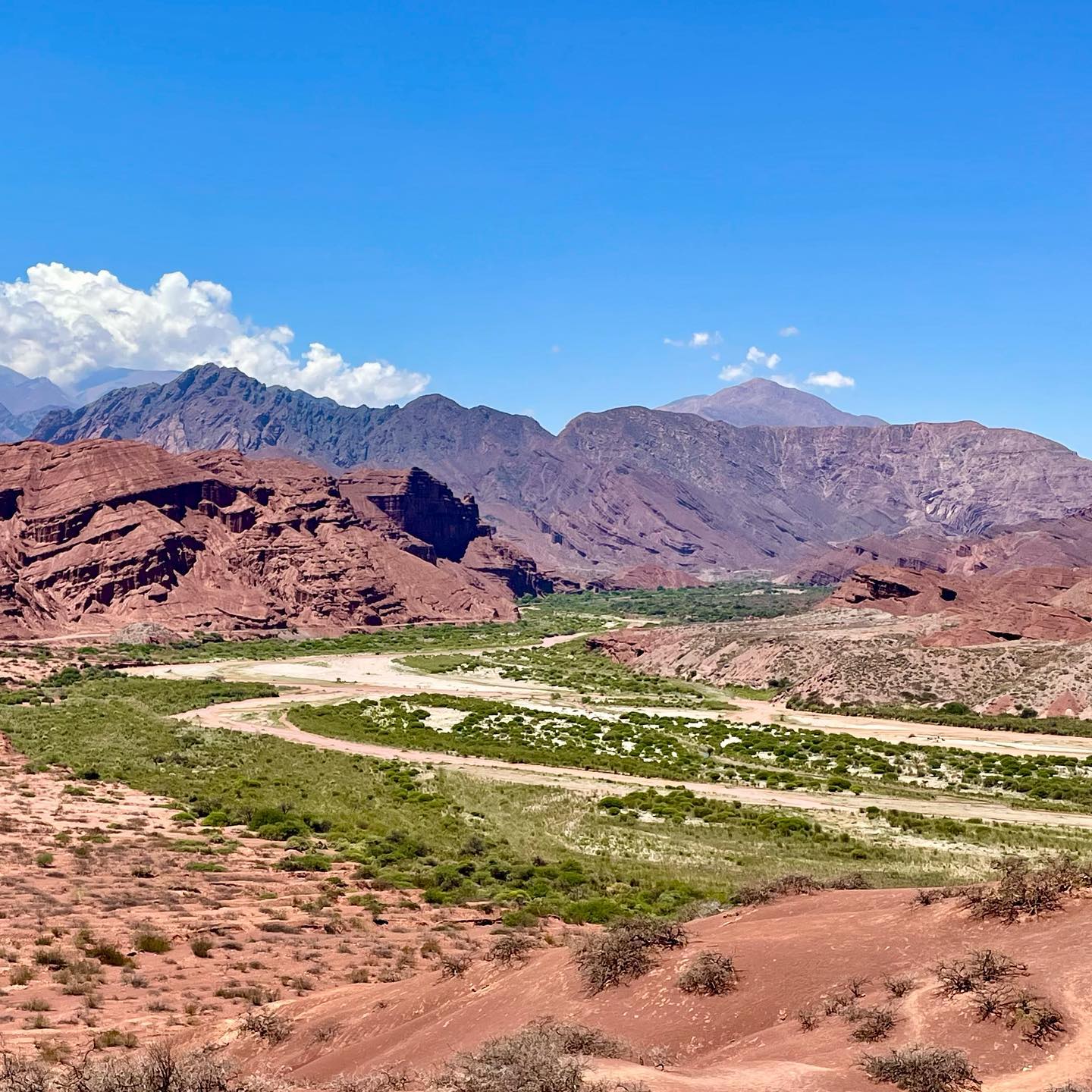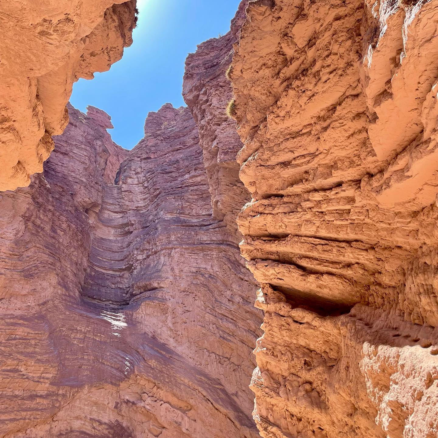 Today’s trip was to Cafayate, 190km away from Salta. It’s a nice wee town probably most famous for its wine, though if you know me at all, you’ll know that’s not why I went – I went for the rocks! My research tells me that the area was initially a result of tectonic movement that was later eroded by water – some of the more famous features of the area used to be waterfalls! The formations run along more than 50km of the road, so there was a lot to see, and there were all quite different in shape and colour. Very interesting! Maybe I should become a rock person ![]()