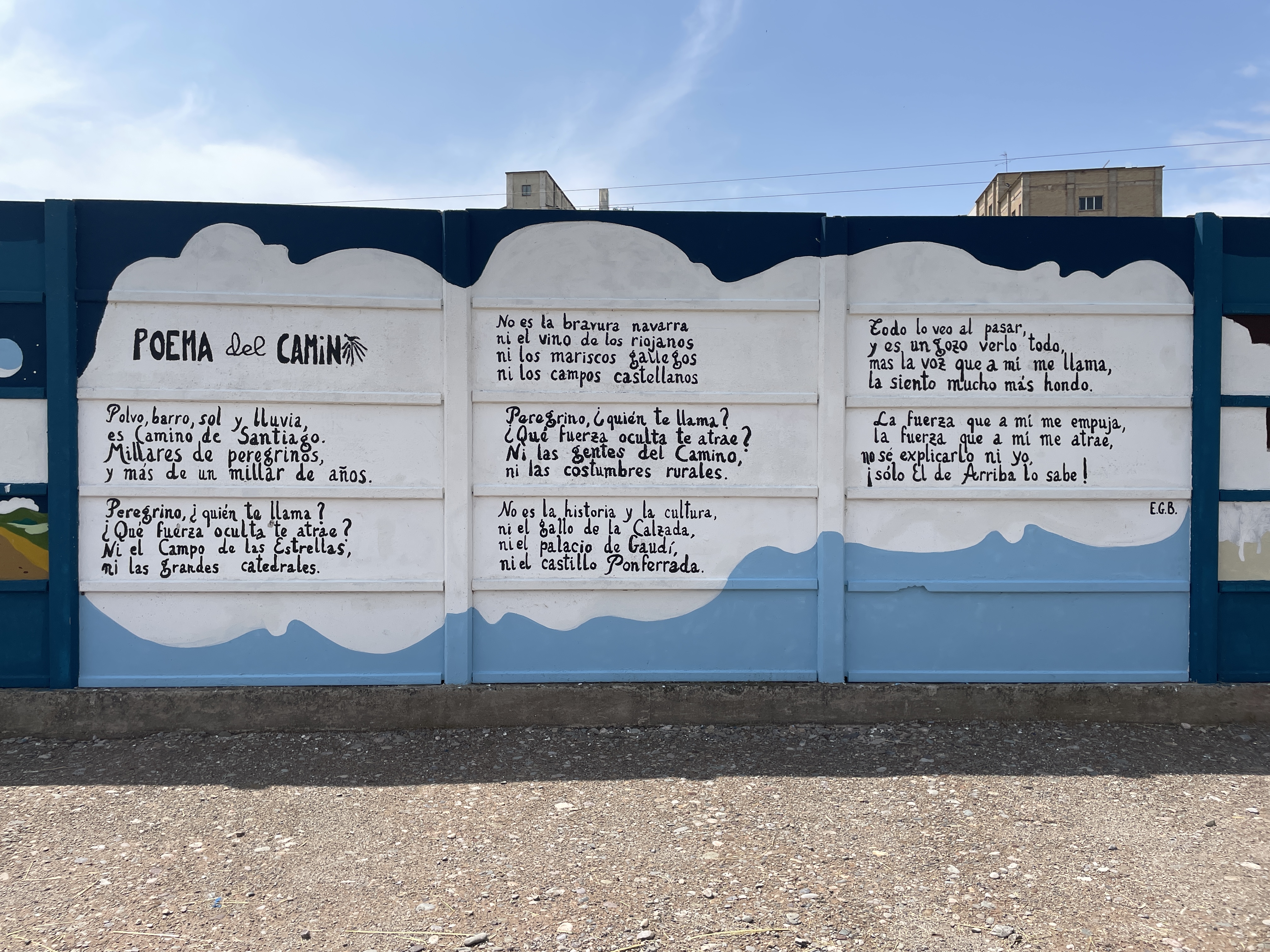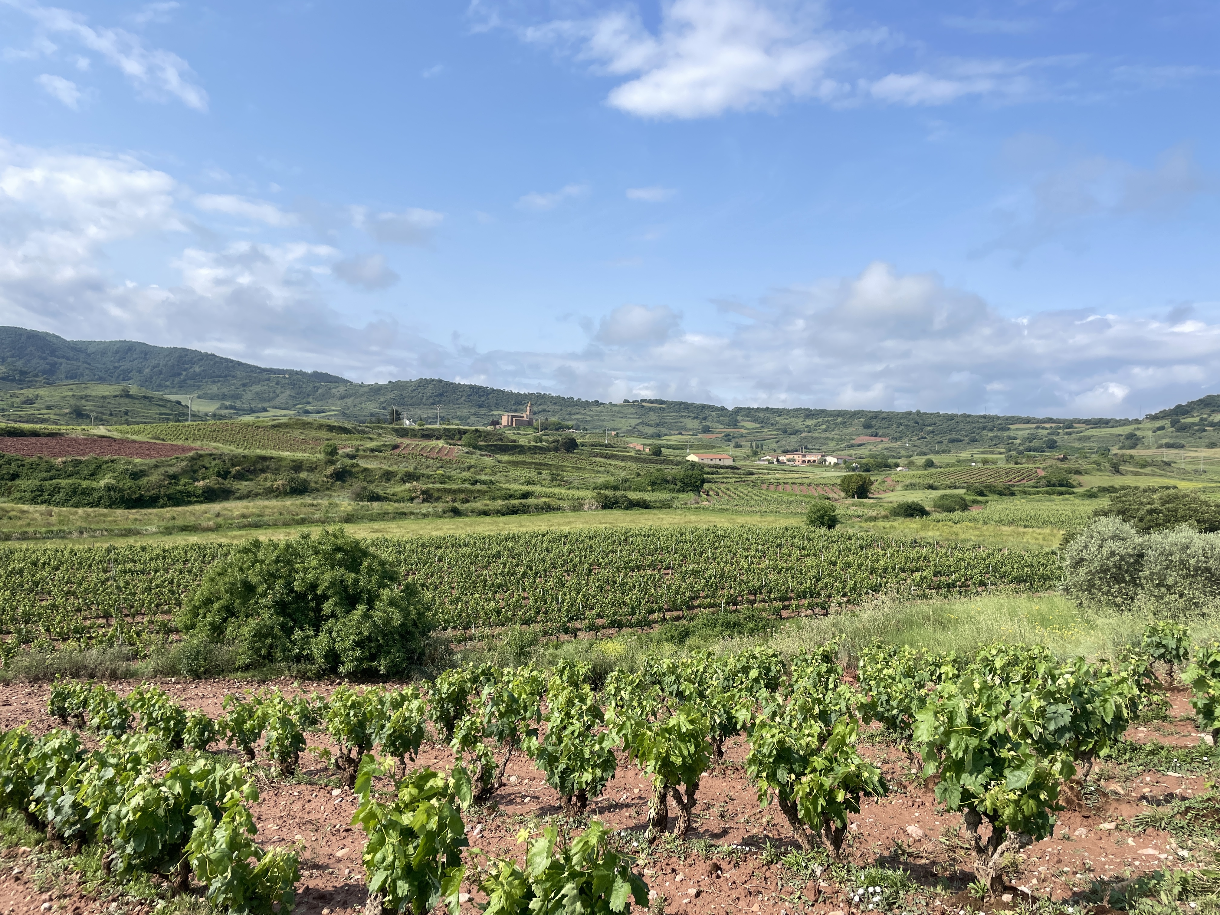 The next morning we set out on our longest day yet: 30 kilometres. The first section was just walking through the streets of Logroño, trying to get out of the city. On the outskirts of town we walked through a nature reserve / recreation area. There was a big playground, biking and walking tracks, a small lake where men were fishing despite the “No fishing” signs, and a rarity in Spain: public toilets! We saw a squirrel and some geese, but I’m afraid I didn’t get a picture.