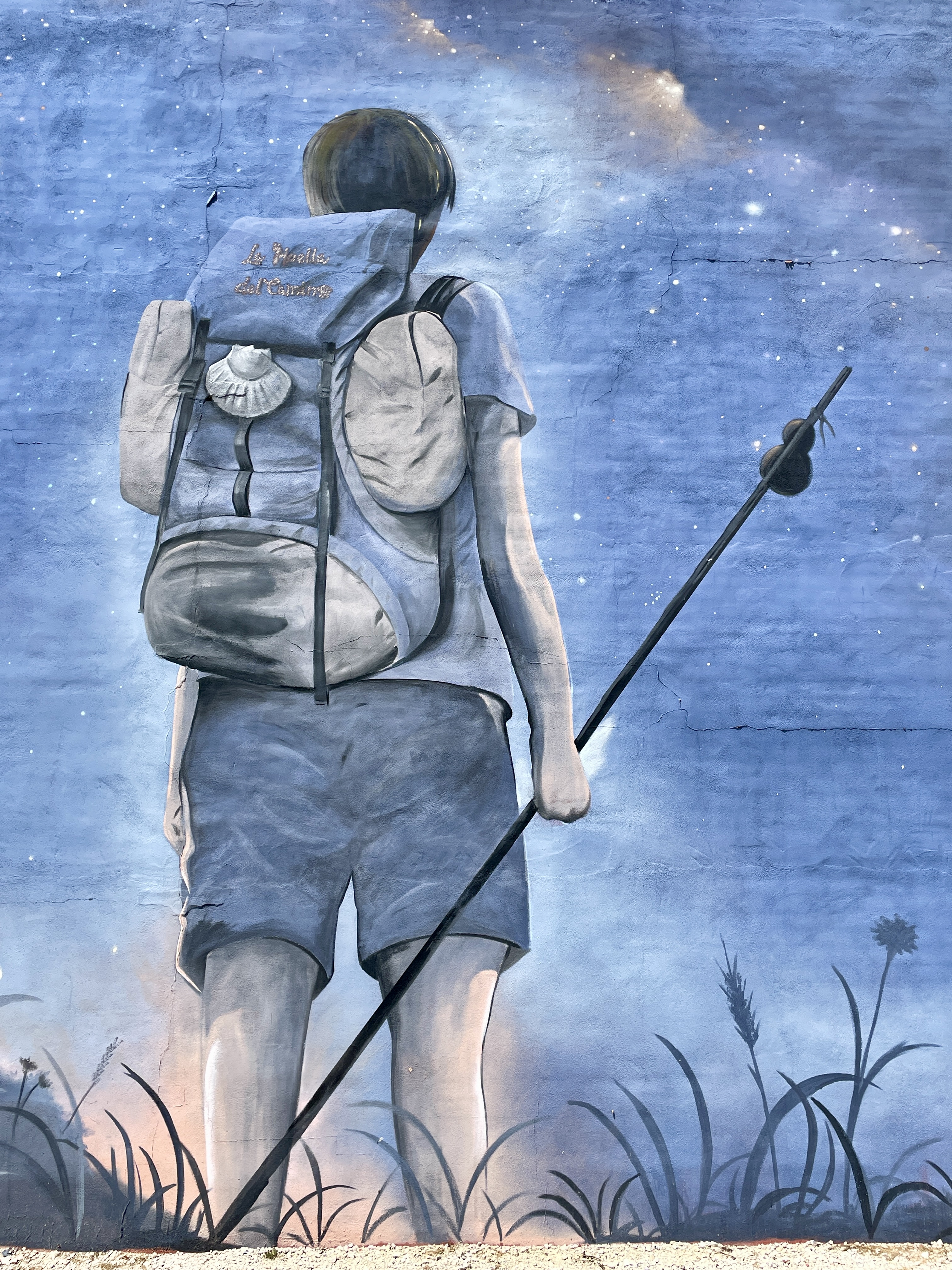 Somewhere along the way he met Gregorio, a priest who had been sent to the area to help out with a plague of locusts. Together they built a bridge across the River Oja, to help pilgrims on their way to Santiago. Later on, Domingo also built a section of the road that we walked both yesterday and this morning. Also, it turns out that he built the building that we stayed in last night!