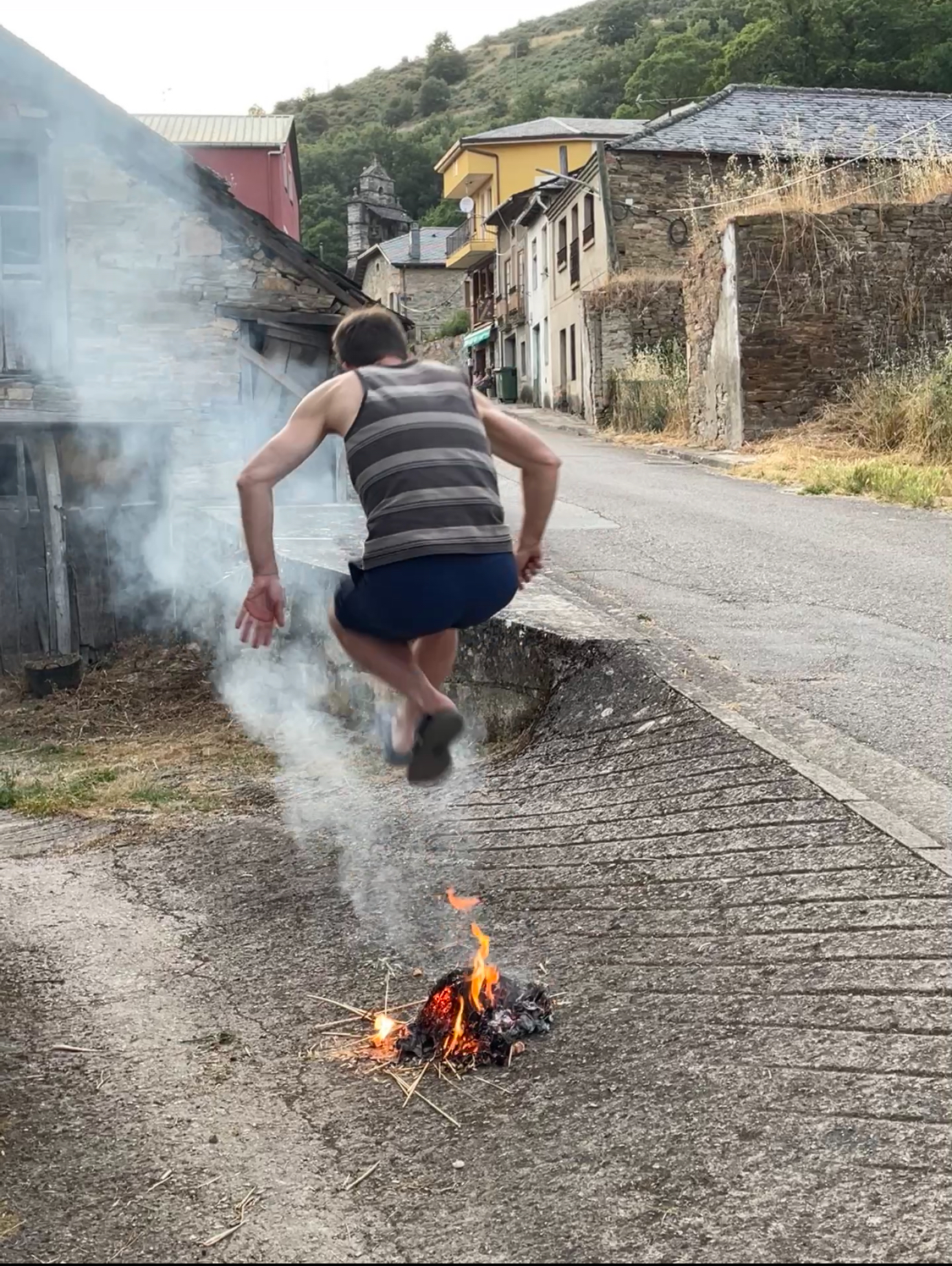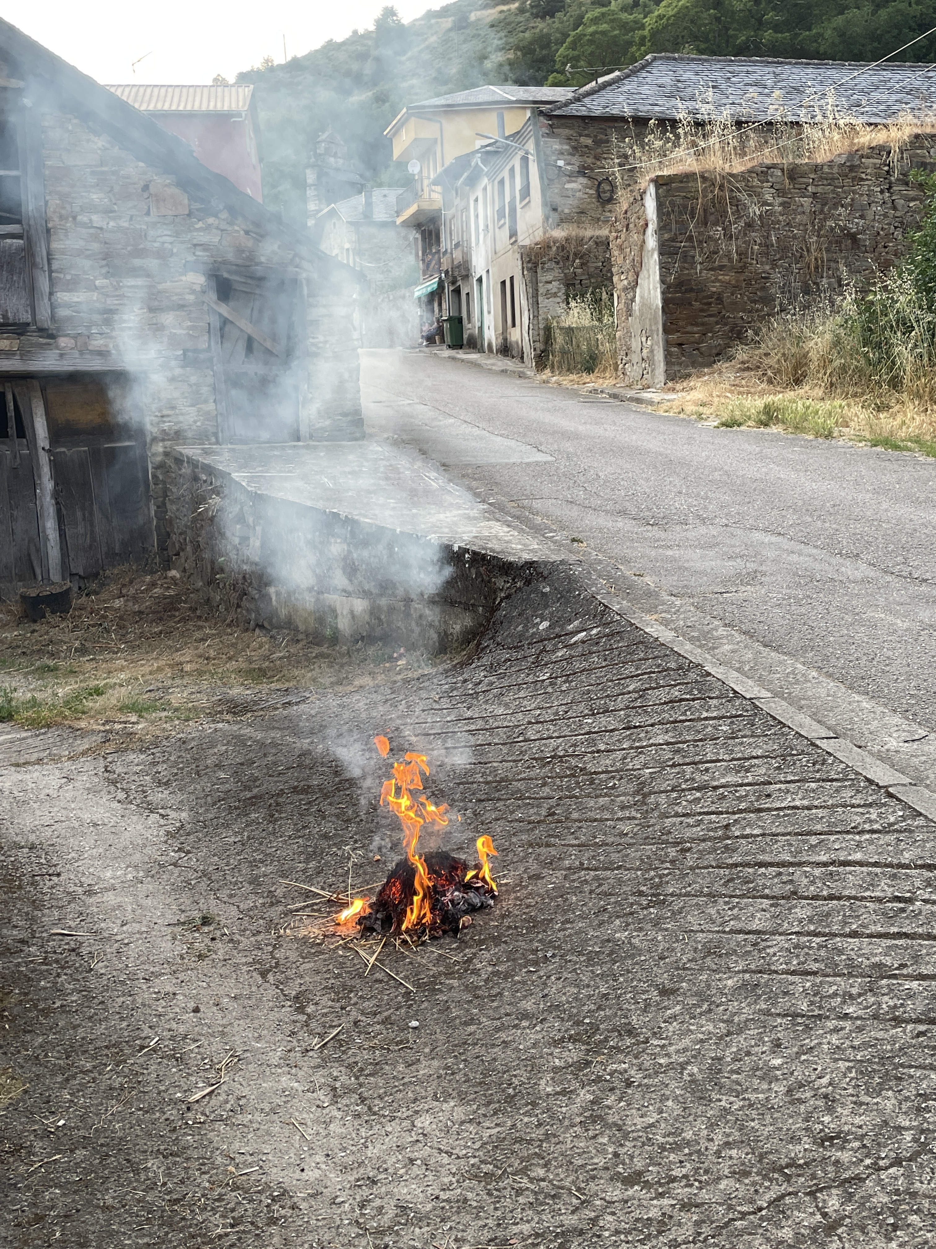 Dinner tonight was particularly good. We had beetroot hummus on bread, zucchini soup, Greek salad, tomato tart, and raspberry almond cake. Afterwards, we took part in a traditional ritual to celebrate San Juan, which is part of the midsummer celebrations here in Spain. We lit a small fire in the street, and all added something to burn, before jumping over the fire as a way of unburdening ourselves. It was good fun, and nice to do something a bit Spanish!
