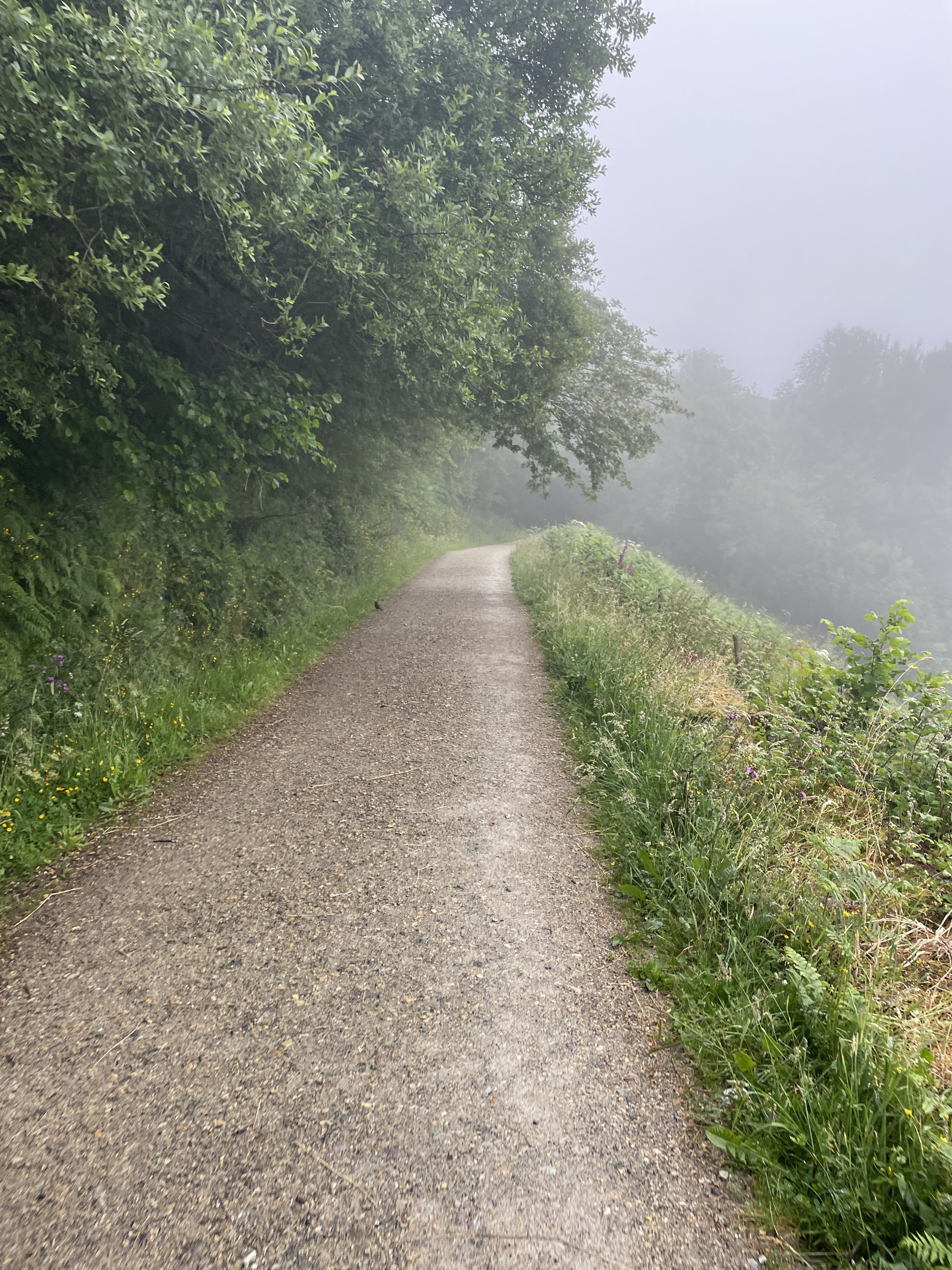 It was cool today, with the day’s high of 21°C not being reached until late this afternoon. Not long after we started walking, the fog settled in, and then just after our breakfast stop, the rain began. Throughout the day we could hear far off thunder, but it wasn’t close to us this time. I actually quite enjoy walking in weather like this, it’s much easier than 30°C heat!!
