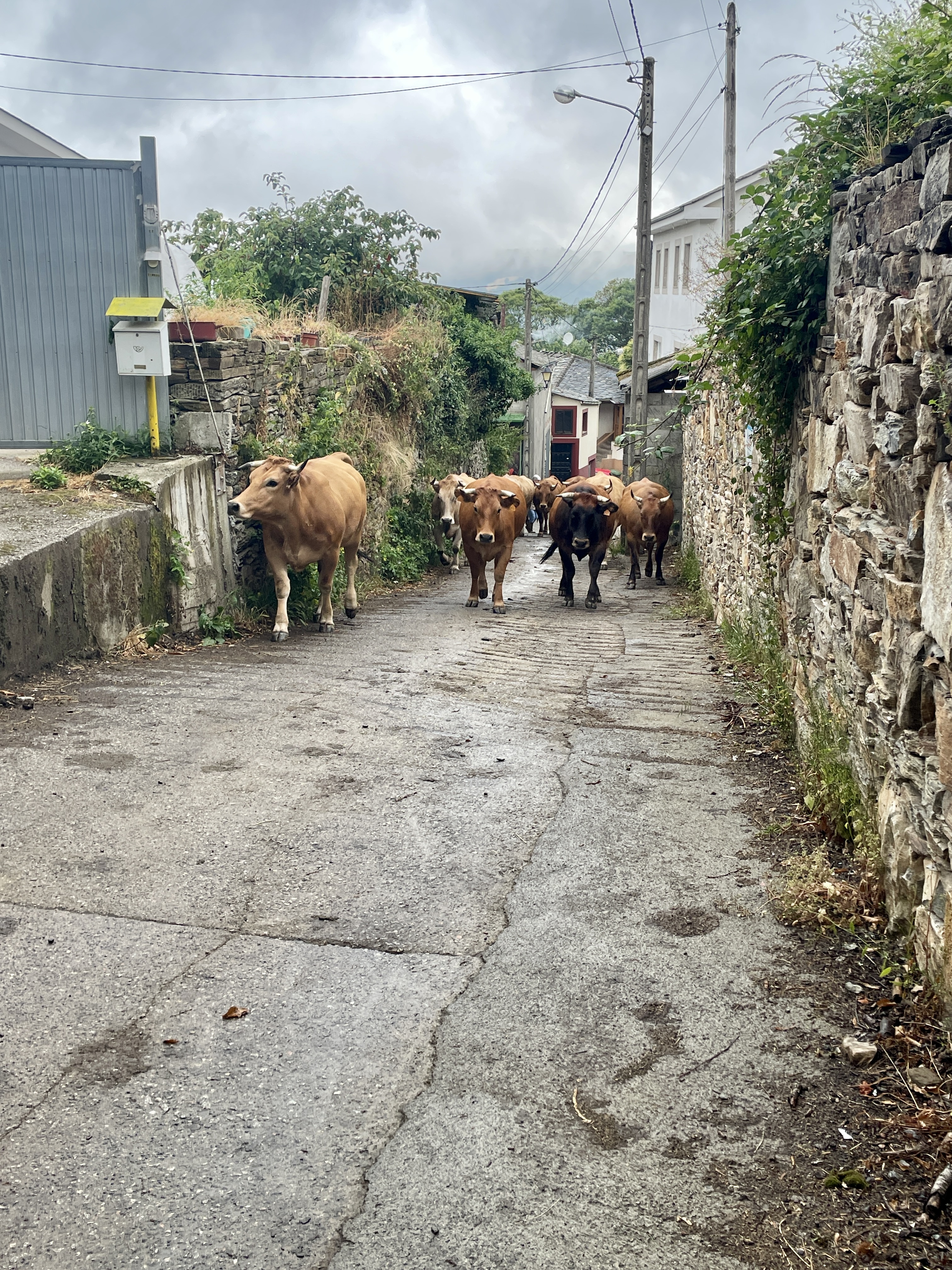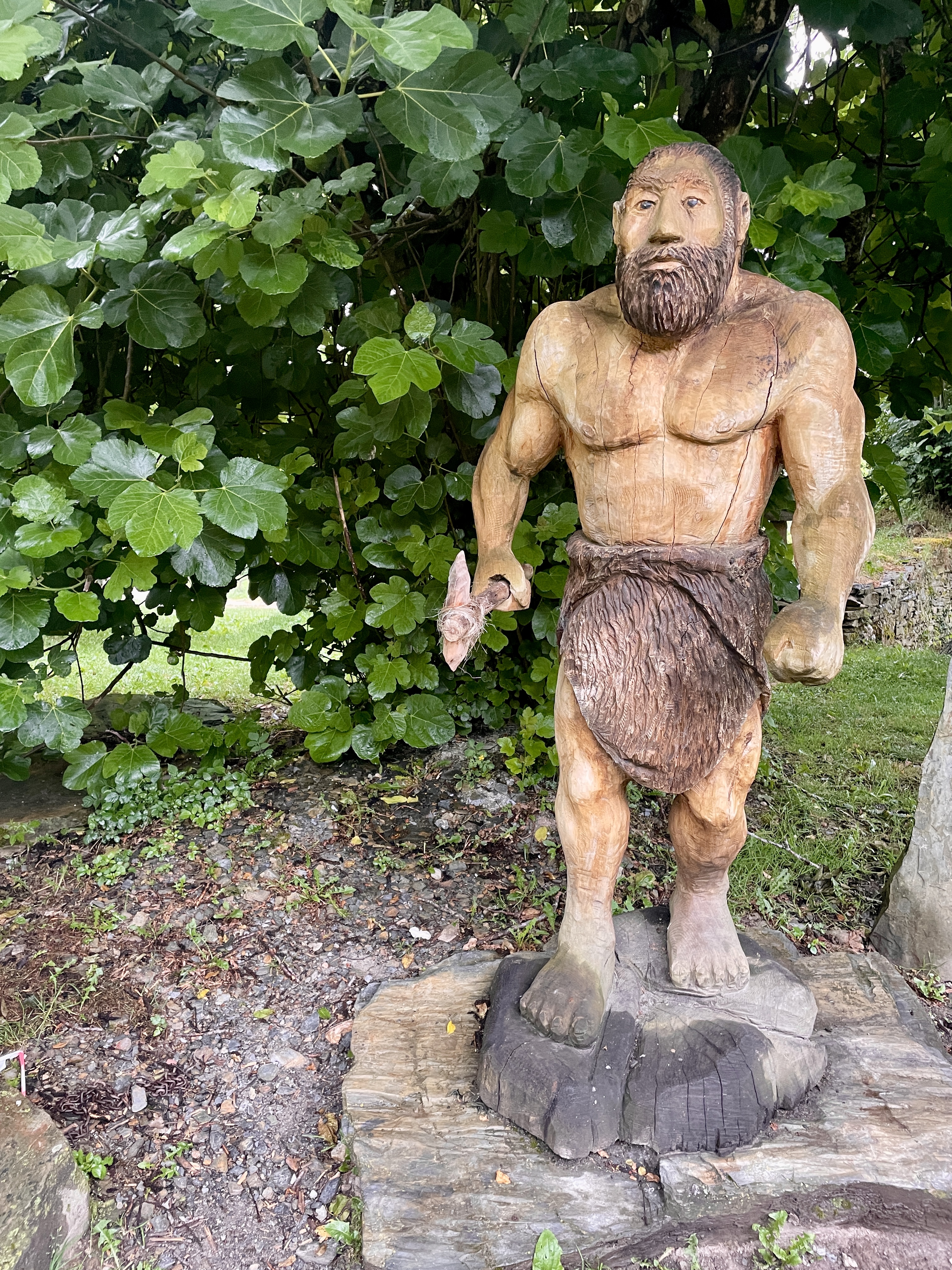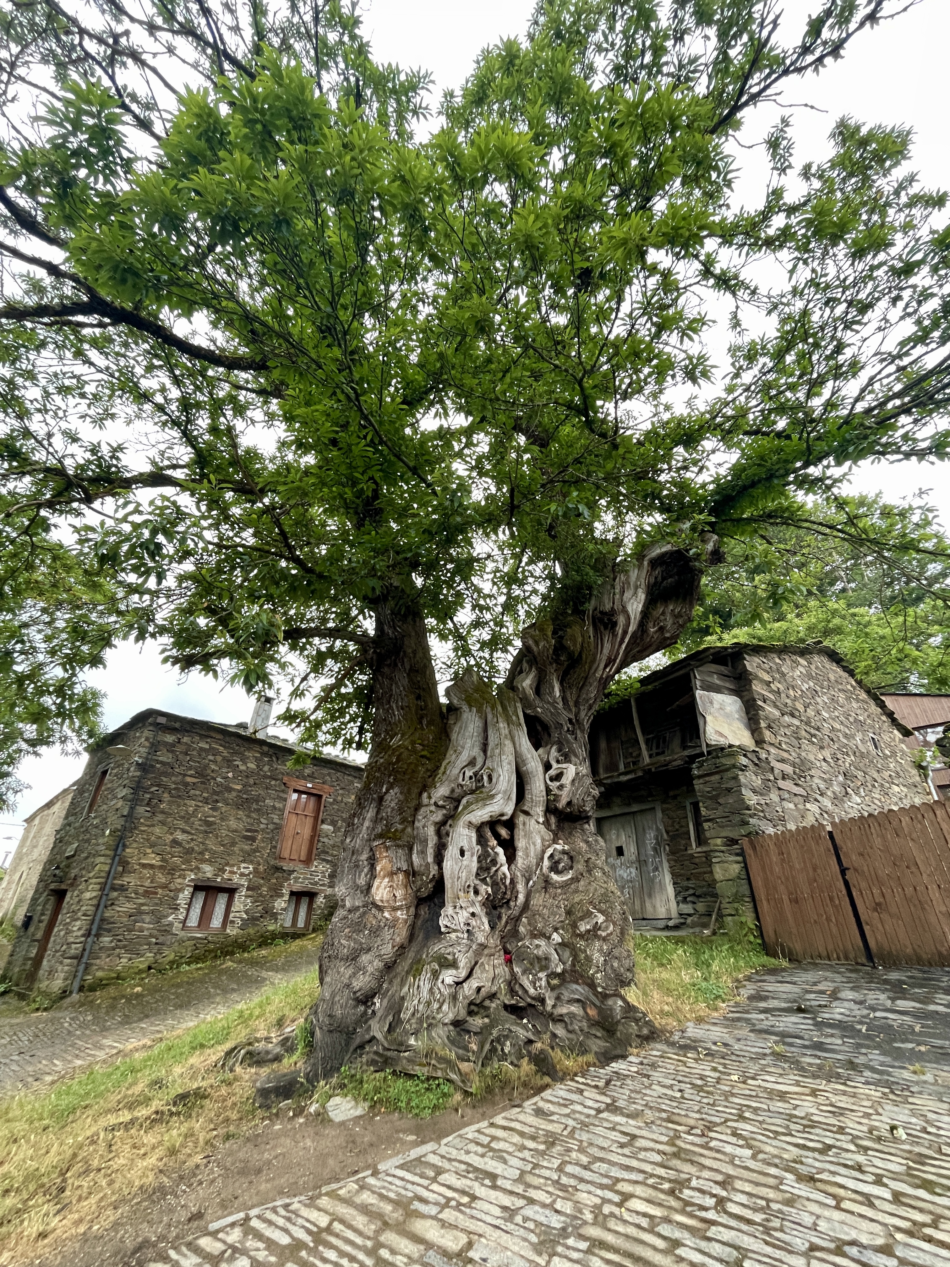 Soon before we arrived in the actual town of Triacastela, we walked past a wooden Neanderthal man, which seemed odd. It turns out that just out of town is the Eirós Cave, an archeological site where evidence of Neanderthal settlement is found, alongside examples of paleolithic art. The public isn’t allowed in, so we didn’t miss out on much by walking past our Neanderthal friend and not doing the research until later. We also passed a chestnut tree, famous for being 850 years old, apparently.