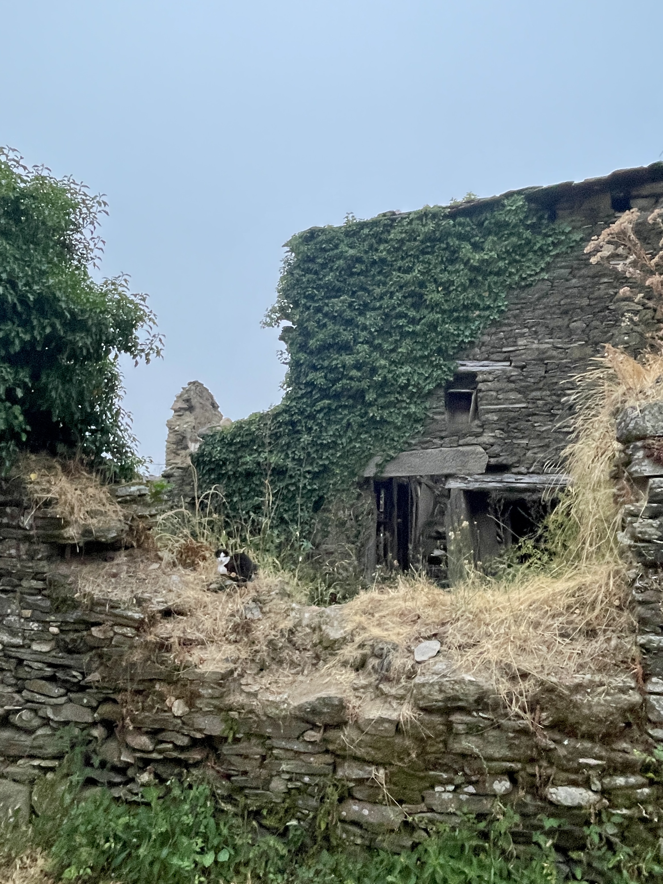 After breakfast, we had a bit of an uphill that took us out of the fog and into the sunlight and the heat. It’s crazy how fast it got hot!! We walked for a short while with Nathalie, from France, who we met back in Trabadelo and have been bumping into since. We had also seen a couple of other people at breakfast – Mercedes and Mike from the US, and Marie Terese and her daughter Claire from France – and it’s quite nice to still be able to run into familiar faces even though the crowds have now arrived.