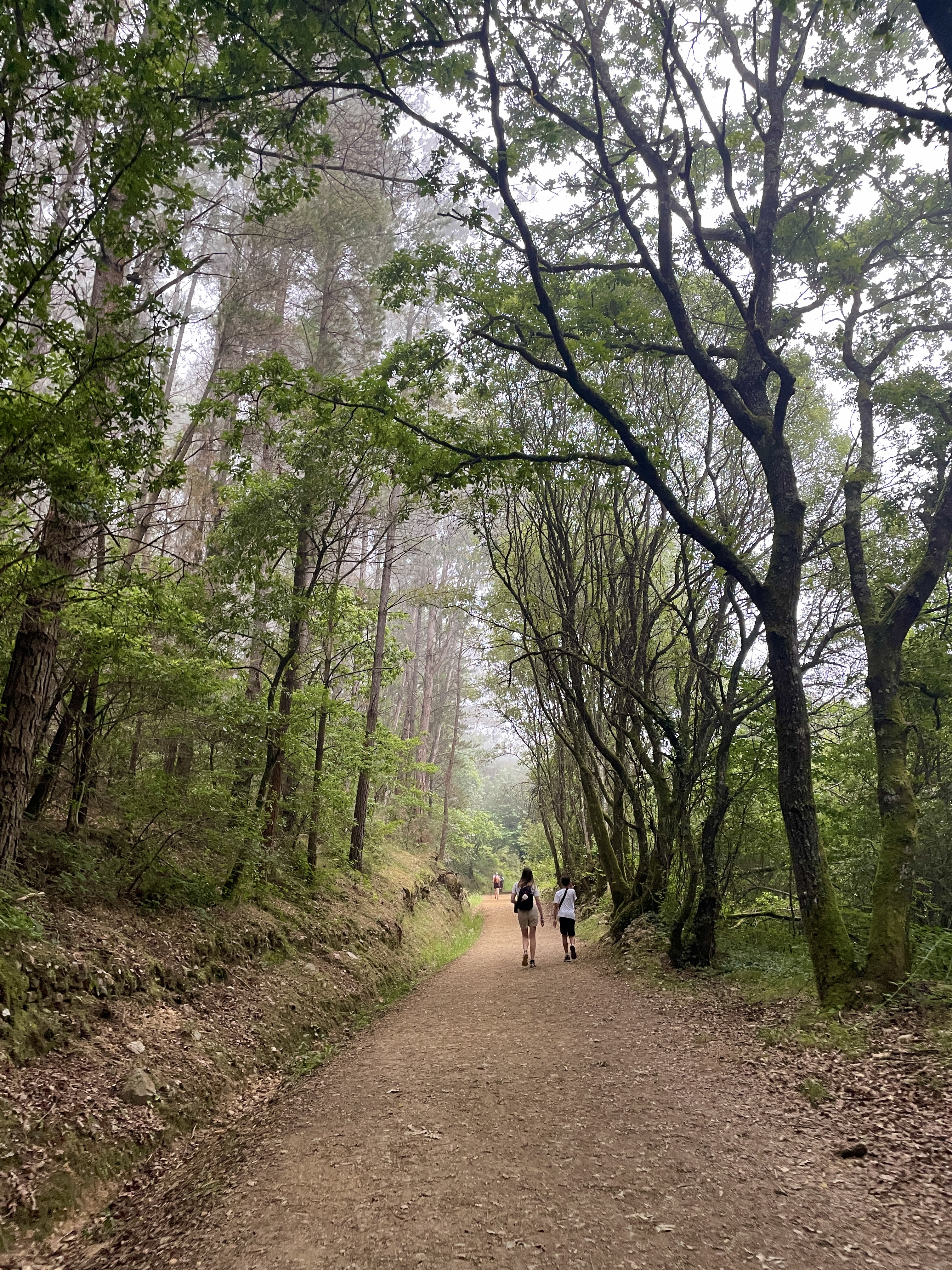 We left around 6:00am this morning, and while it was clear then, the fog soon arrived. It stuck around for a long time today, and we didn’t get out of it until after we stopped for breakfast at 10:00am. Walking through fog is quite dampening – my hair was wet by the time we stopped, and I had to walk without my glasses for a while as they were covered in condensation and I couldn’t see anything.