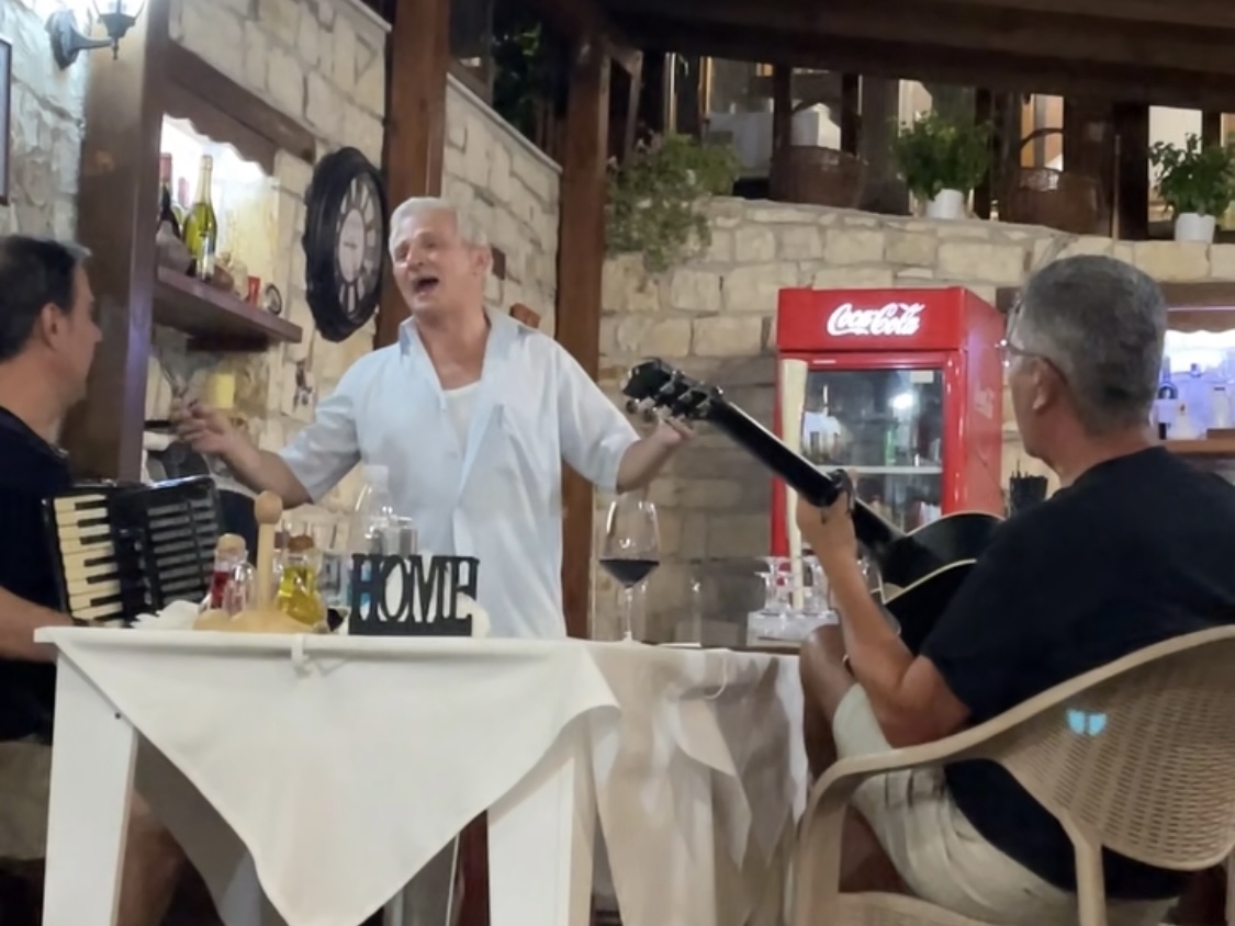 That evening we went out to the loveliest little restaurant. The owner talked to us about the history of the place, and his own family history, and we ate outside under his grapevines. The food was delicious – I had stuffed aubergine – he made his own wine, and later in the evening, he and his staff started singing and playing the accordion and the guitar. It was a rather lovely time, and perfect for our last night in Albania.