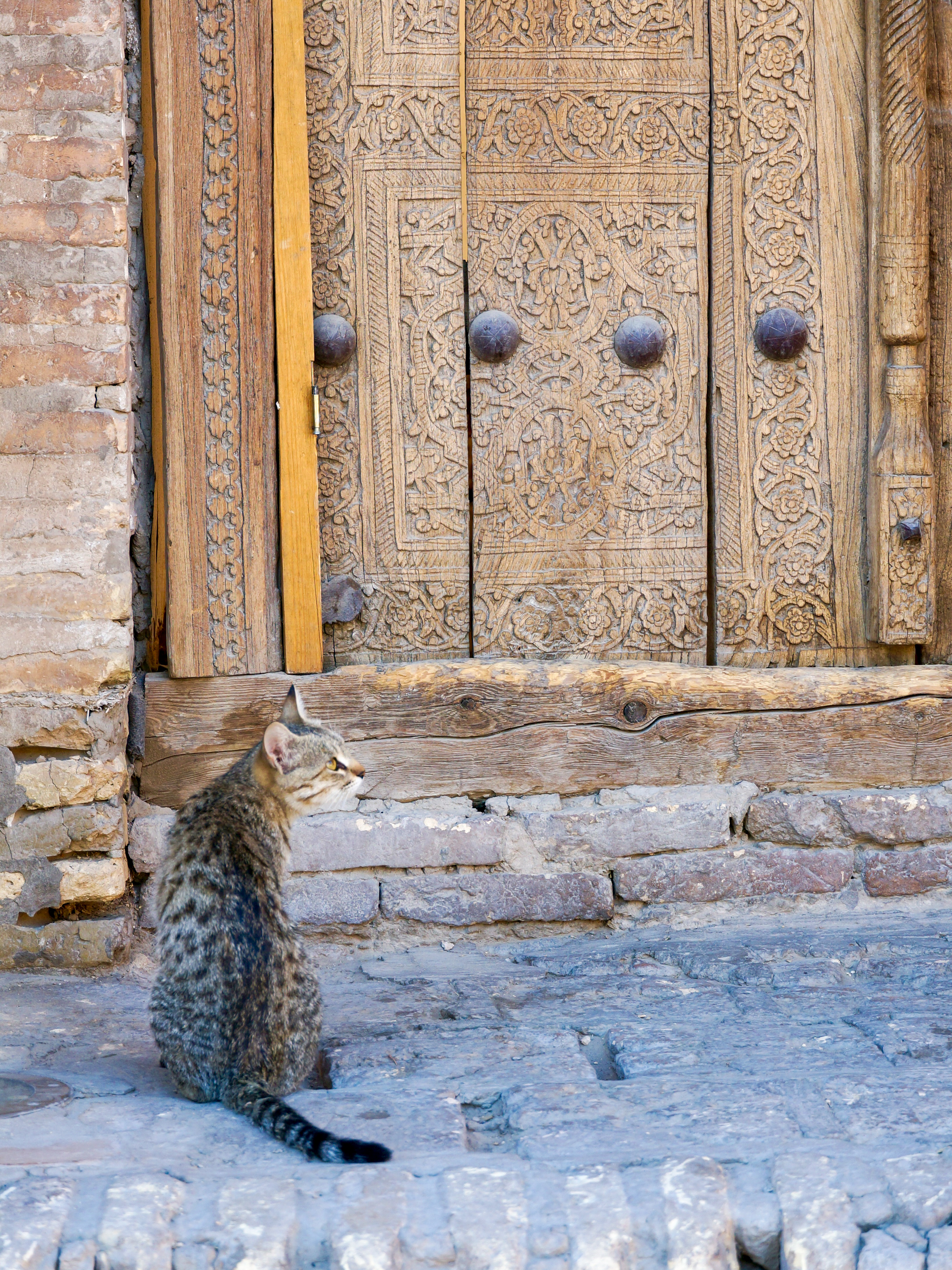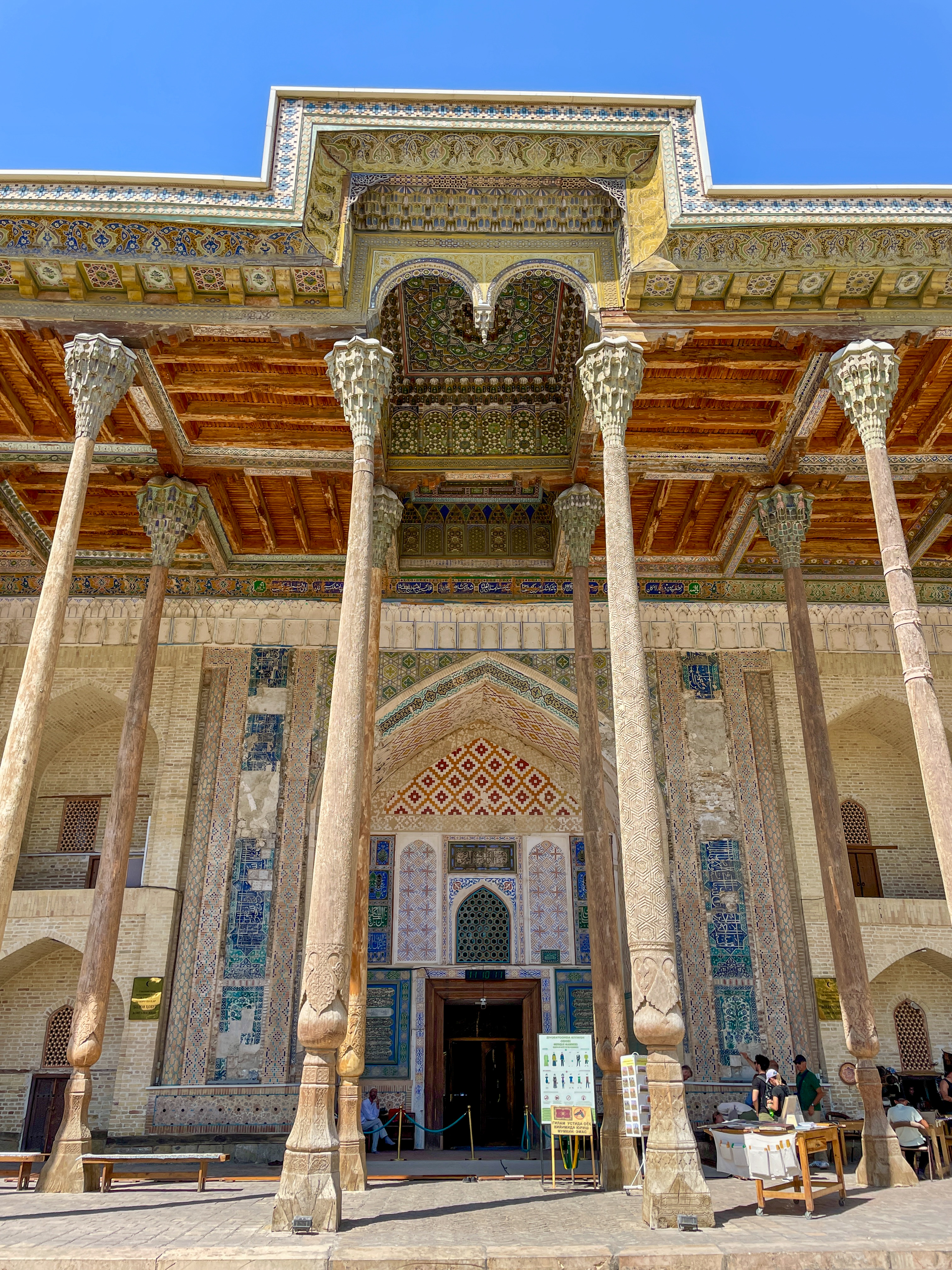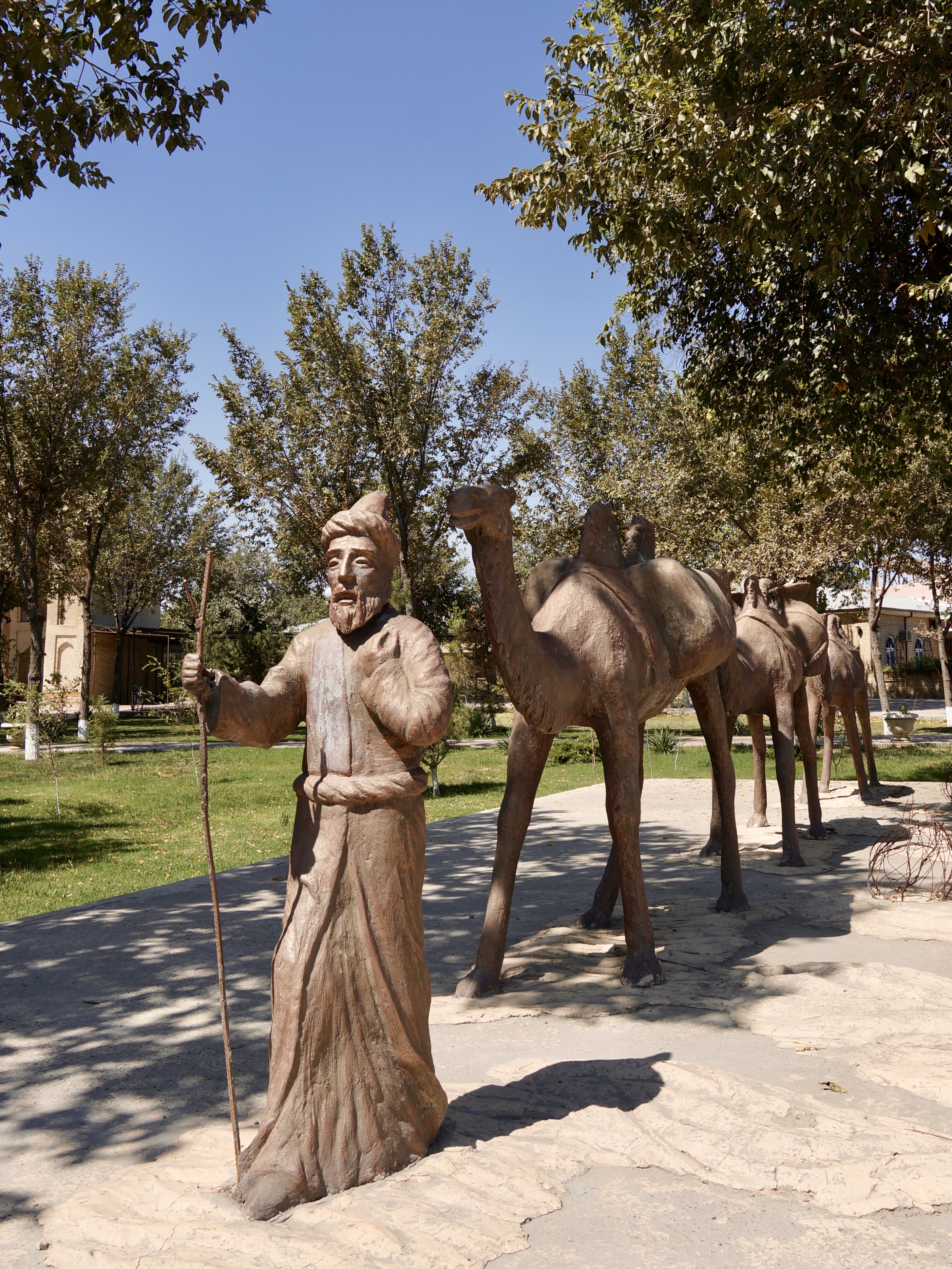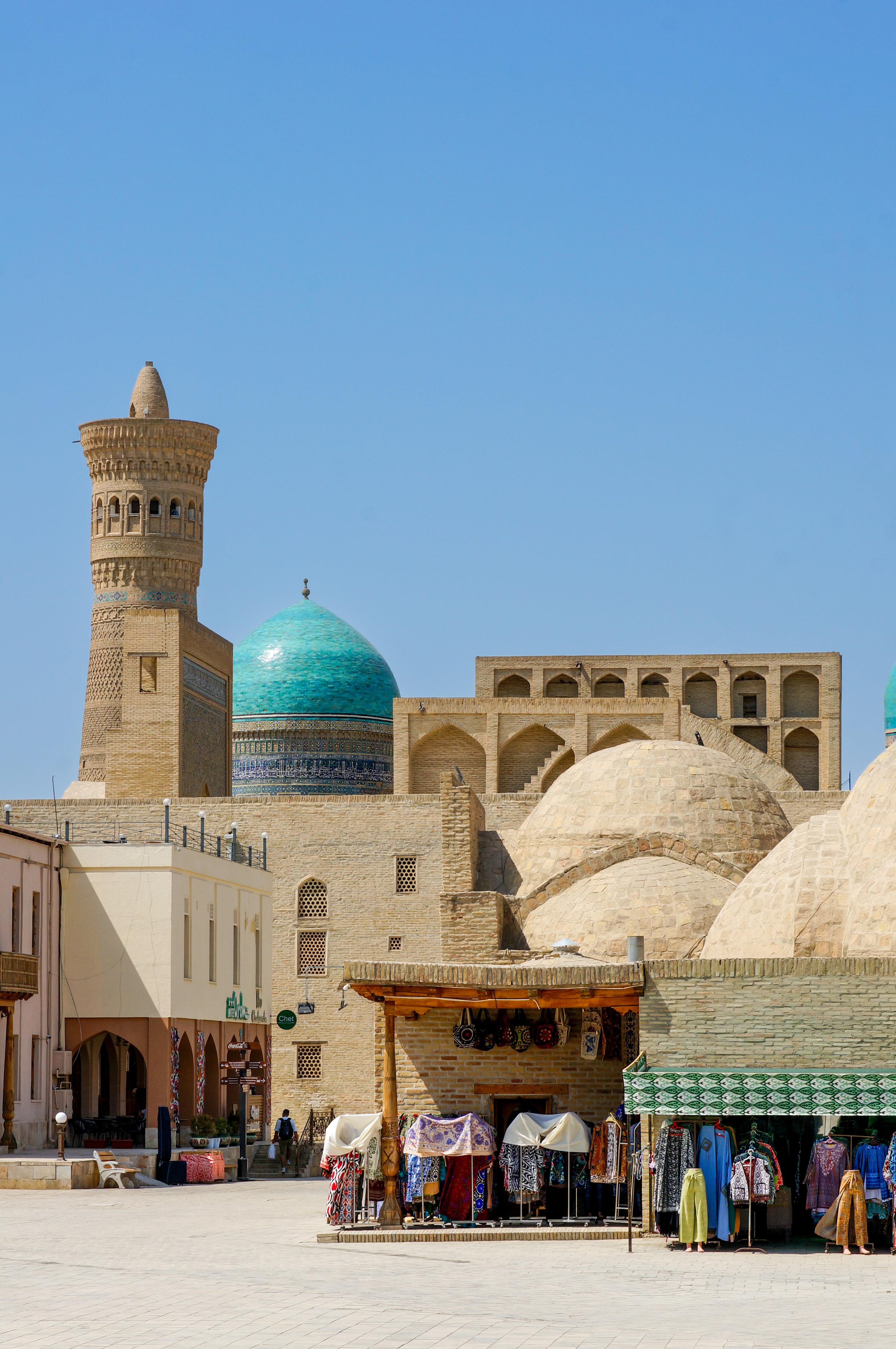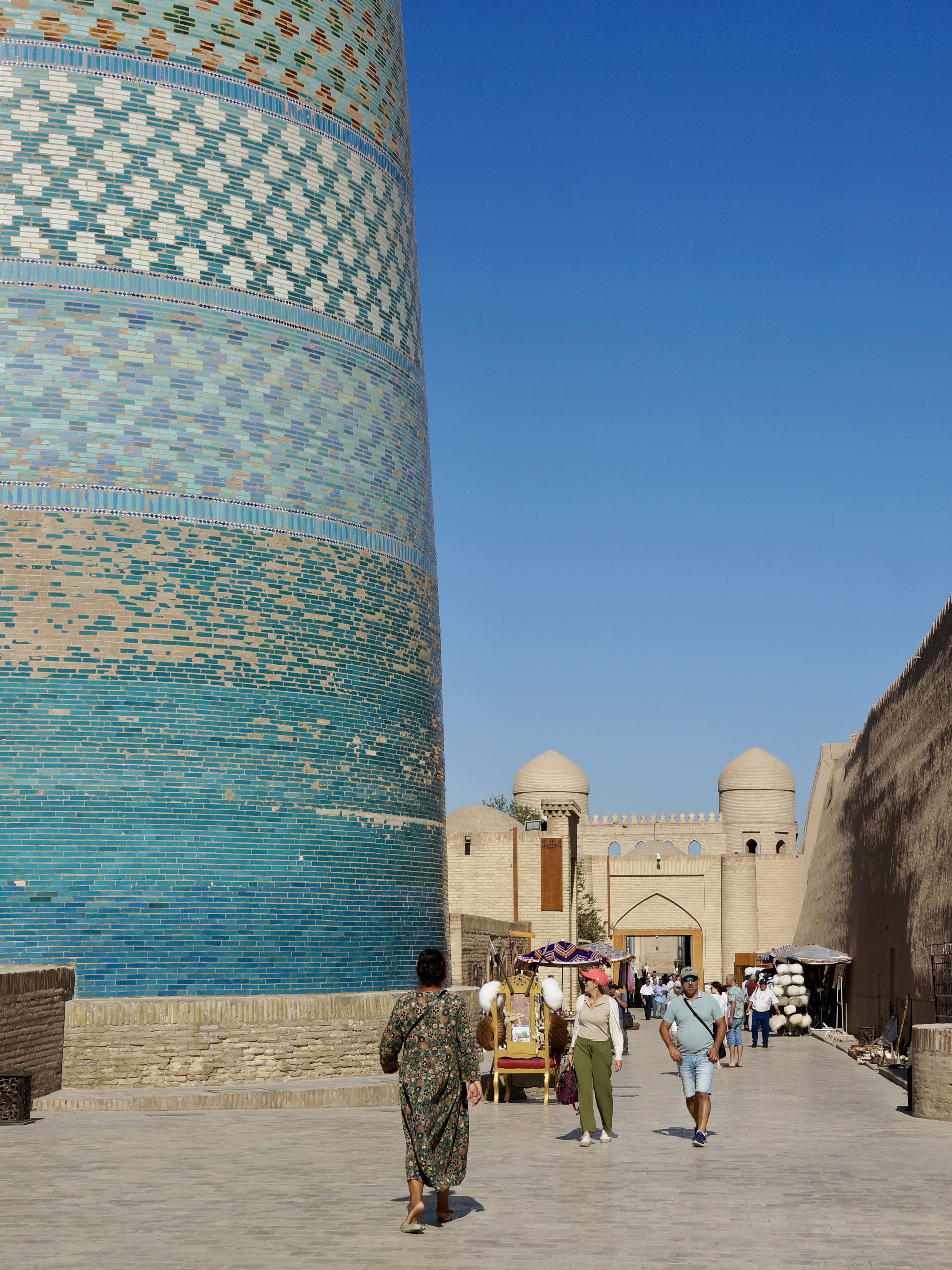 Crossing from Turkmenistan, one of the least visited countries in the world, to Uzbekistan, the most touristy of the Central Asian nations, was a bit of a contrast. Suddenly there were people around, lively towns and cities, souvenir shops lining the streets, and lots of other foreigners. It was hot – high 30s most days, and little shade – so mornings and evening became our main exploring hours.