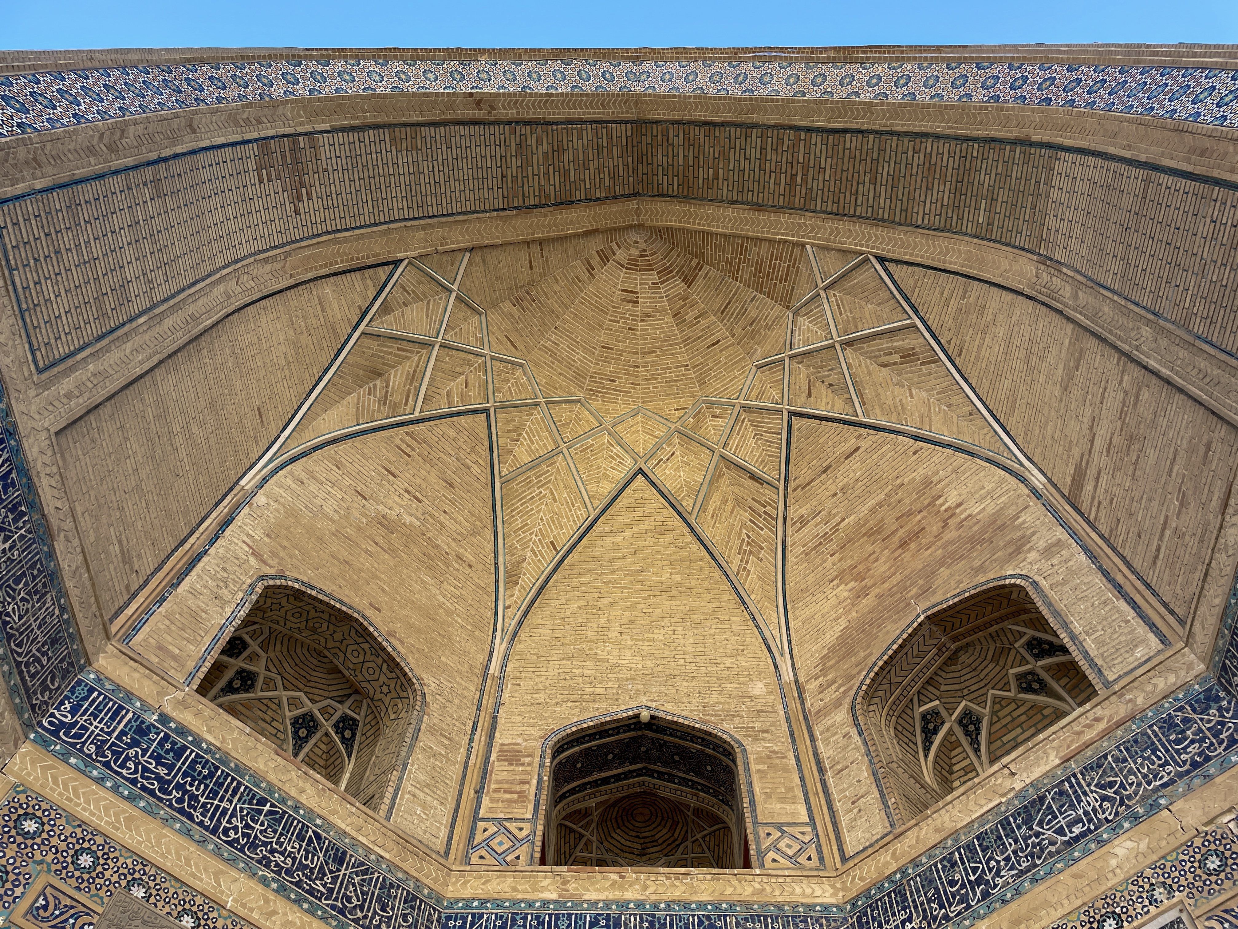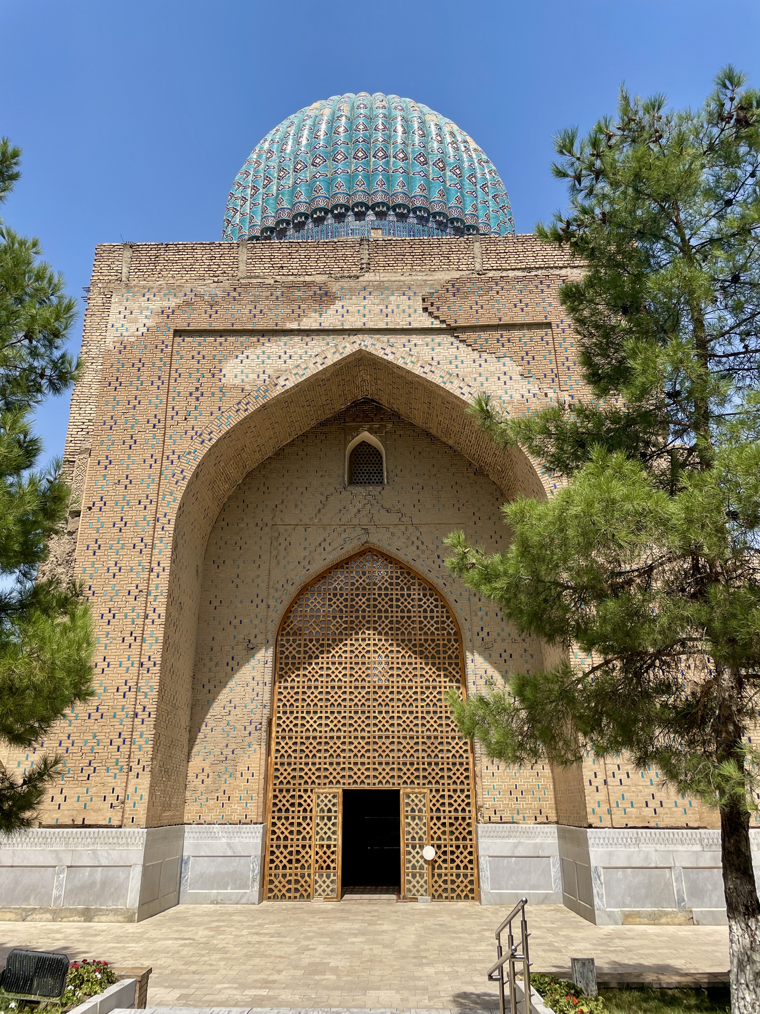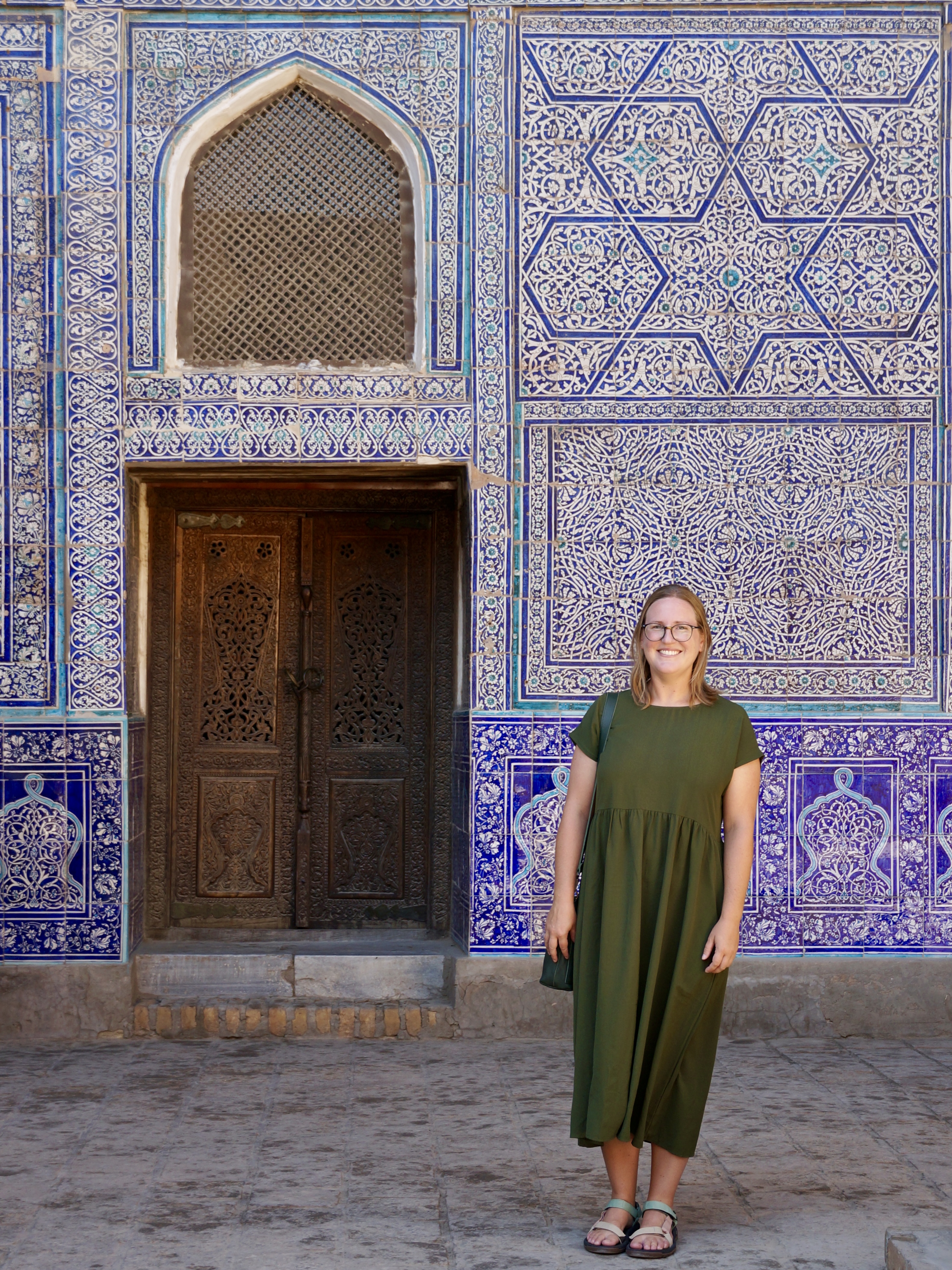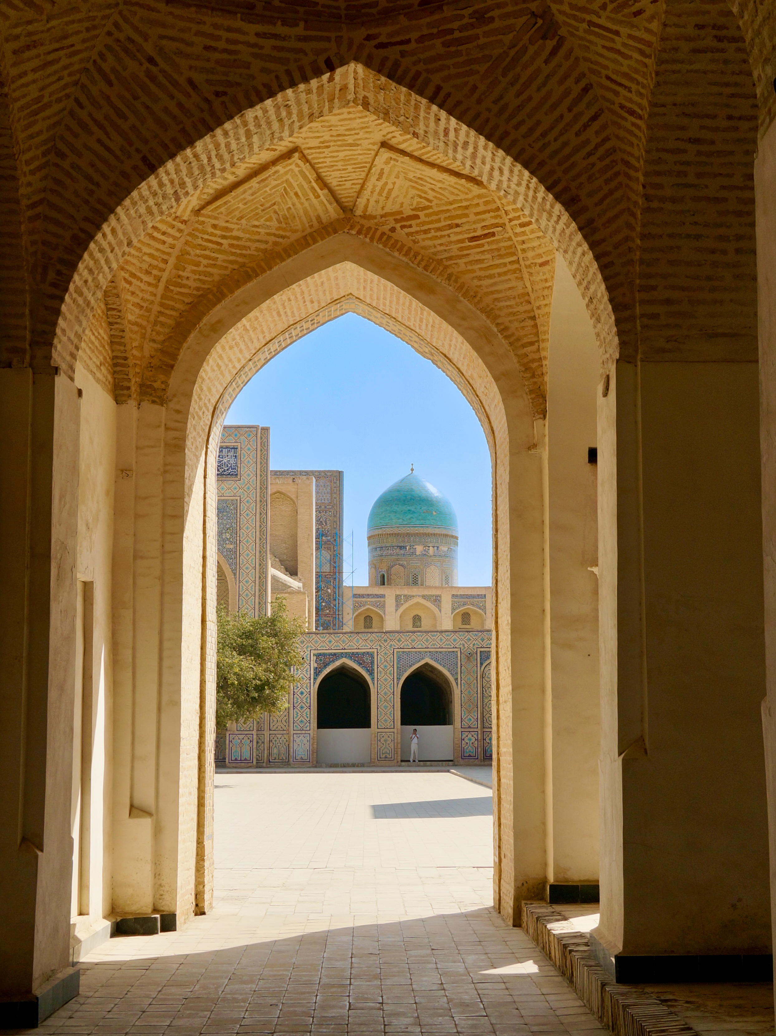 We spent most of our time in Uzbekistan visiting three historical cities, Khiva, Bukhara, and Samarkand, followed later by a short stop in the capital city, Tashkent. All three cities had an old town at their centre, and have of course now grown significantly around these. Walking through the centres you find yourself in lots of interesting little alleyways lined with brown clay buildings. Scattered throughout are mosques, minarets, and madrasahs, all decorated beautifully in blue and green tiles.