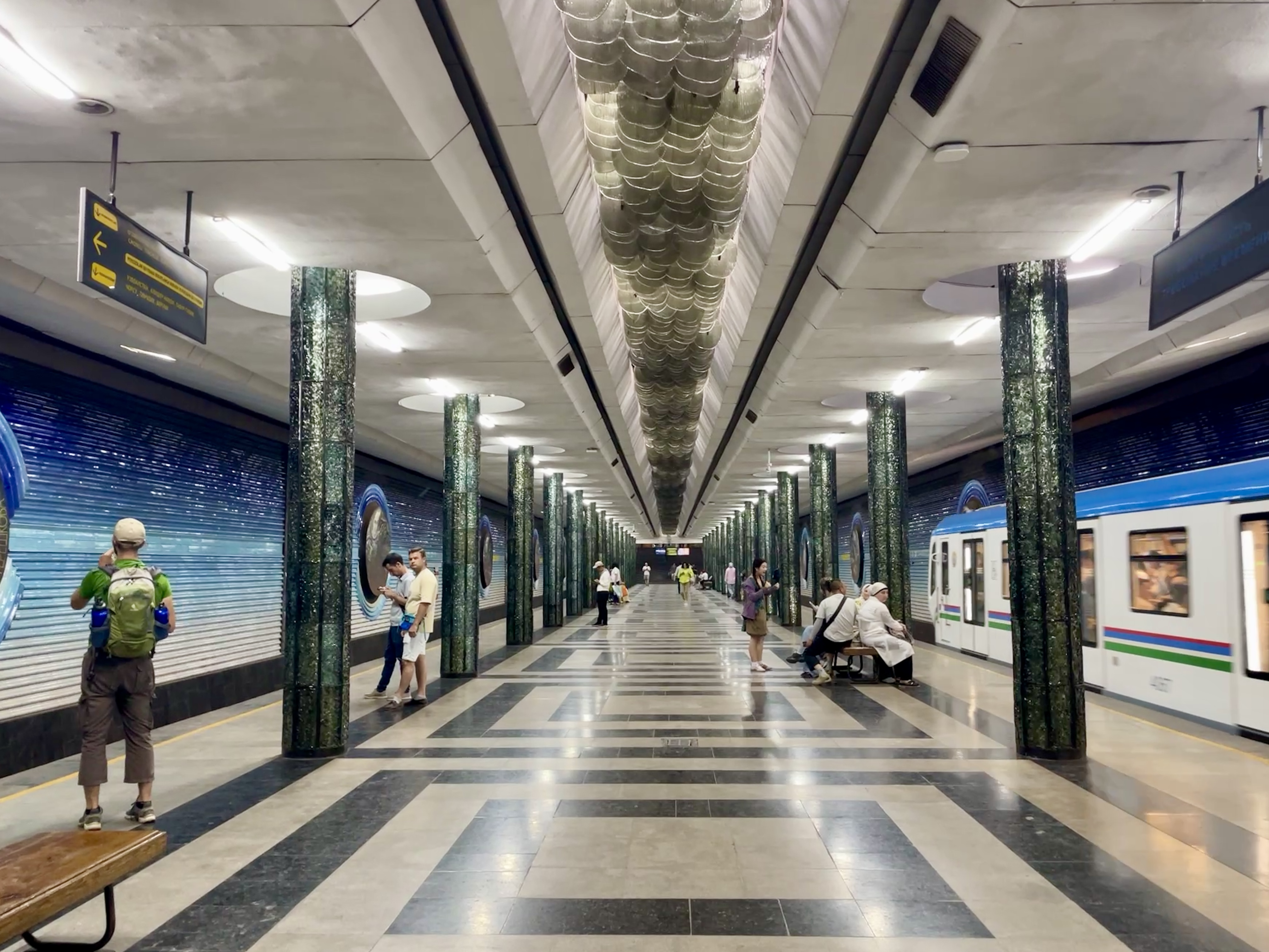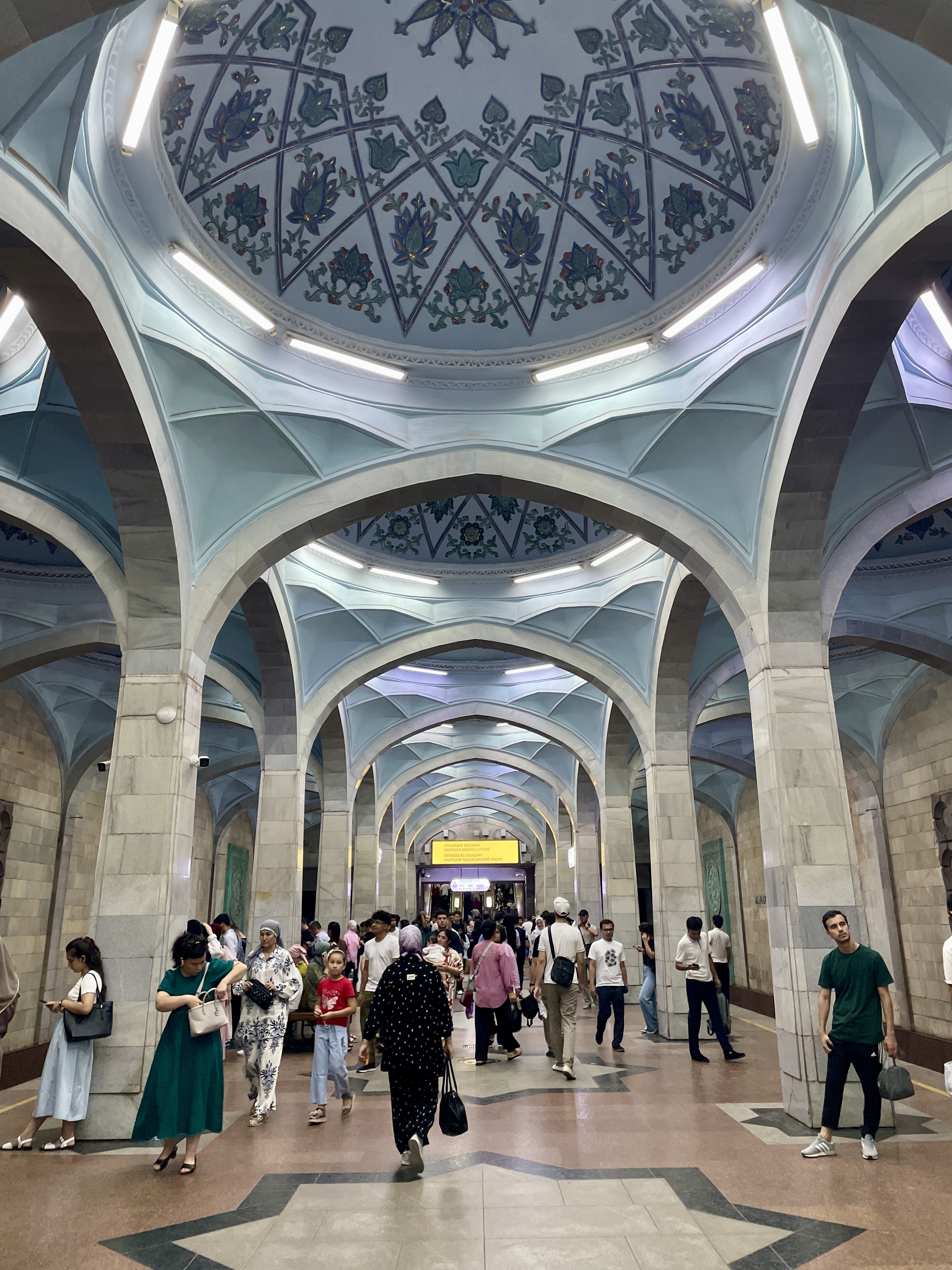 The colours and tiles were some of my favourite things here, but I have to admit that it did become a bit repetitive after a while. Eventually, all the places we visited all began to merge together in my mind and I began to lose track of everything – while all very impressive, the designs of the buildings and mosaics definitely followed similar themes! Some places that stood out though were the massive turquoise minaret at Muhammad Amin Khan Madrasah in Khiva, Po-i-Kalan Mosque in Bukhara, and of course Registan Square in Samarkand. Other highlights were getting lost in the backstreets of the old towns, lively dinners with the group, seeing how carpets are painstakingly knitted by hand, and the metro stations of Tashkent.