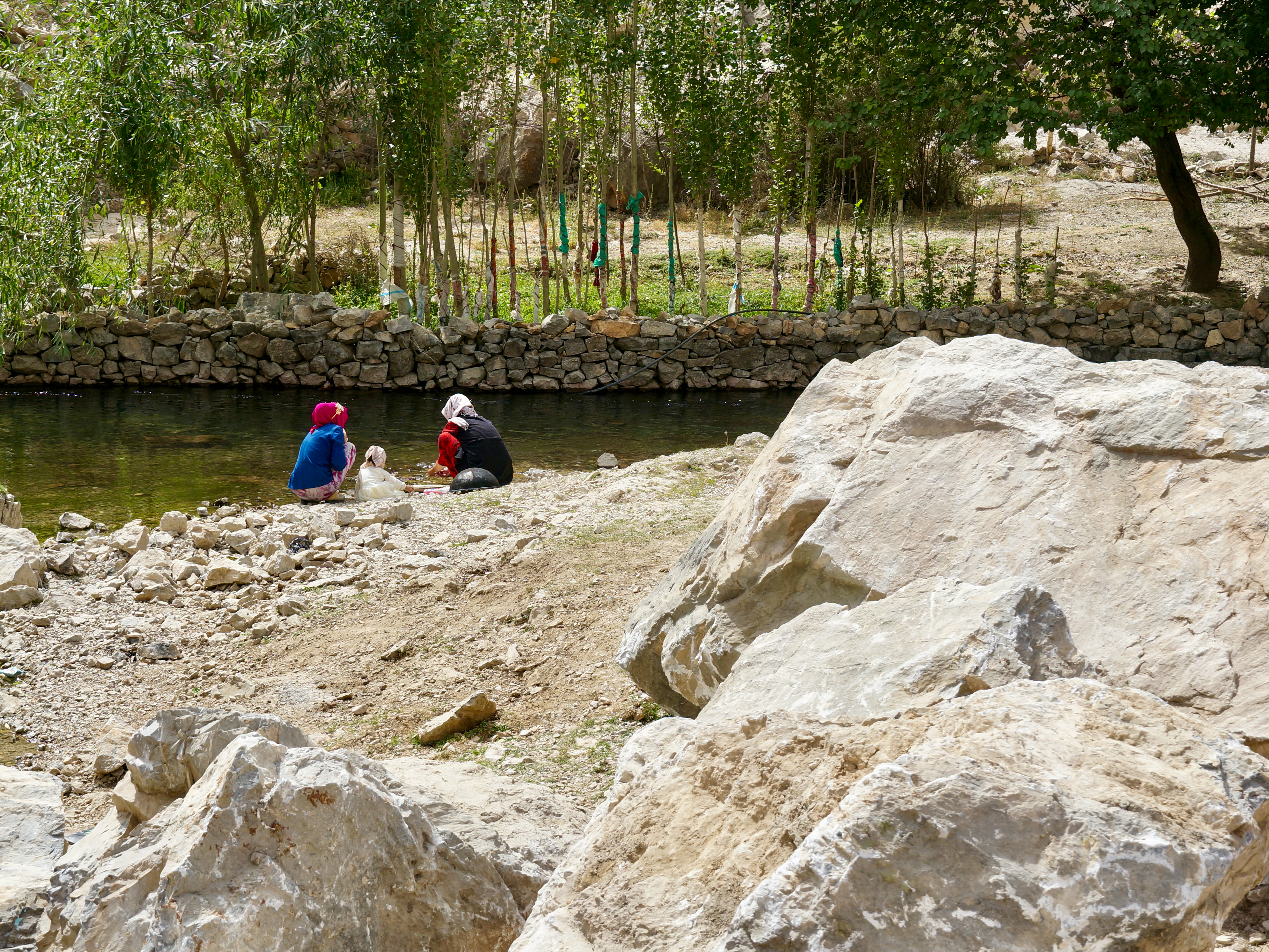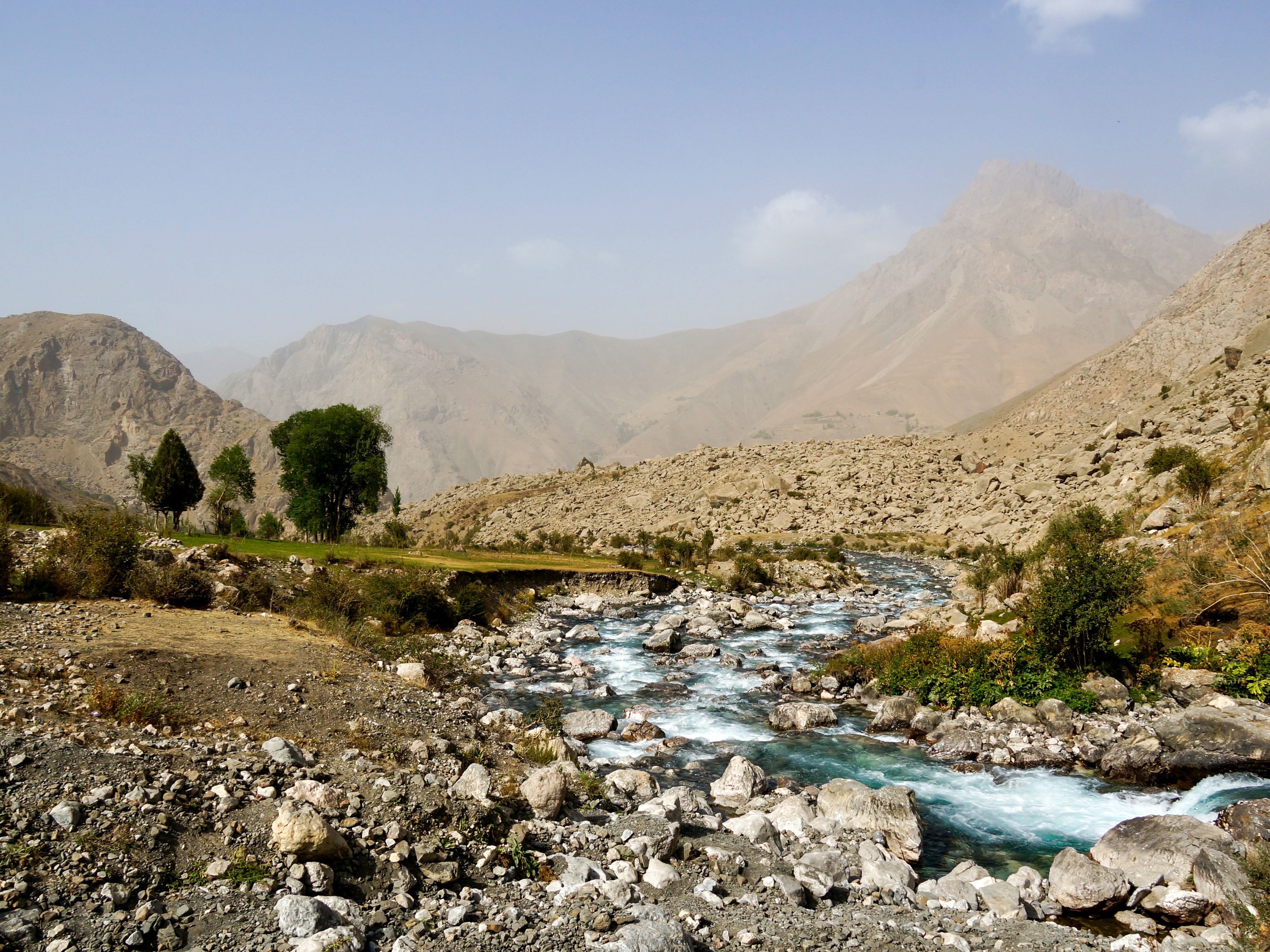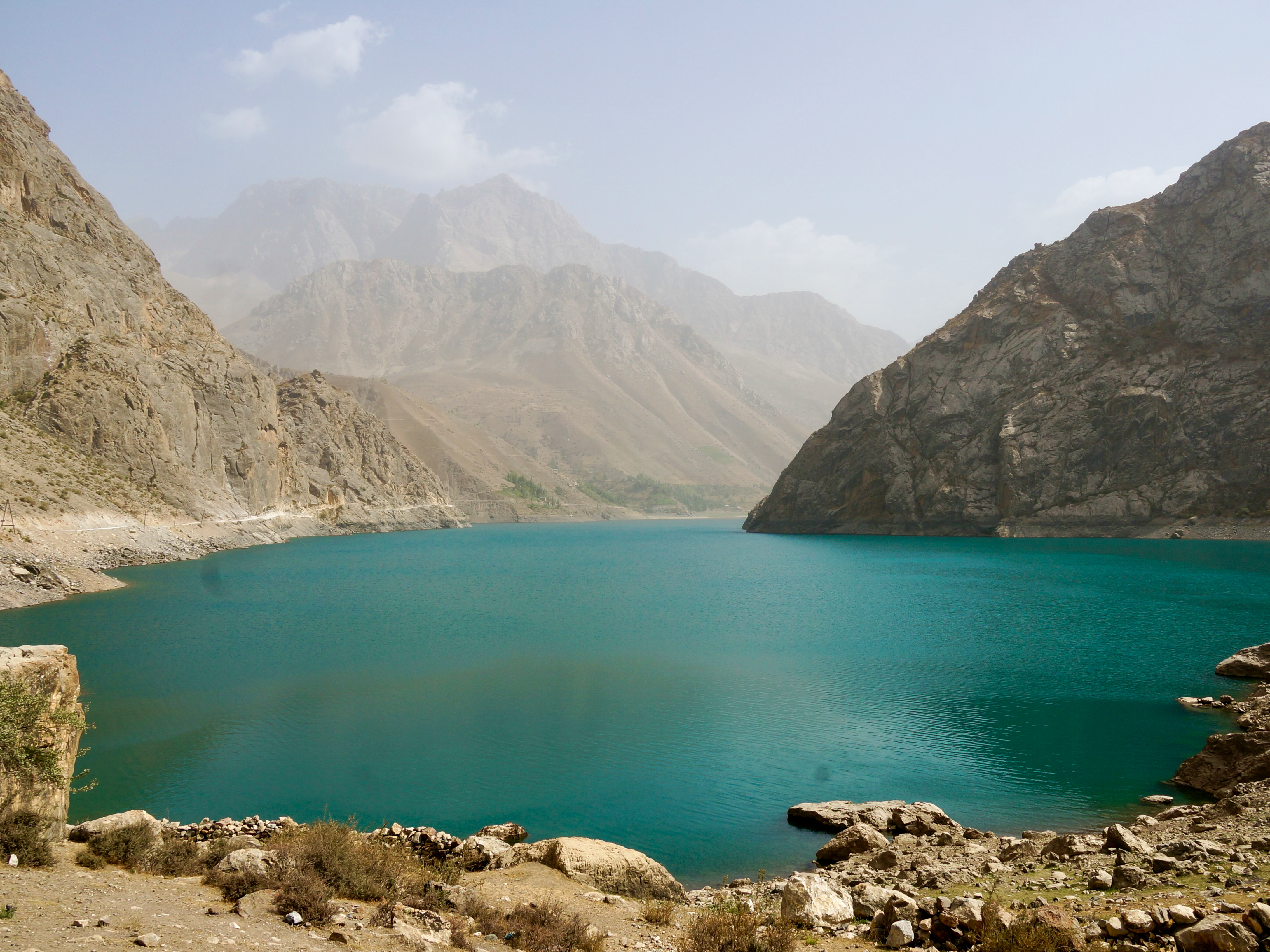 Part way through our Uzbekistan adventures, after Samarkand and before Tashkent, we took a wee detour for a few days through Tajikistan. It was a busy few days too! Our new guide picked us up from the border crossing not with a bus, but with a number of four wheel drive vehicles, and straight away we were off to see the Seven Lakes. Located in the Fann Mountains, these are a major attraction in Tajikistan, and they’re known for the various shades of blue and green in the water. The road was pretty bumpy, so the comfier vehicles were appreciated! Approaching the area we passed through several small towns where people were living in very simple conditions – houses made of mud bricks, doing their washing in the river, bridges made of whatever scrap metal was lying around. It’s easy to think that we’ve advanced past that sort of lifestyle, when clearly large parts of the world still live that way. While tourism in the area is clearly increasing, we were still a bit of a novelty, and we received lots of waves as we passed through.