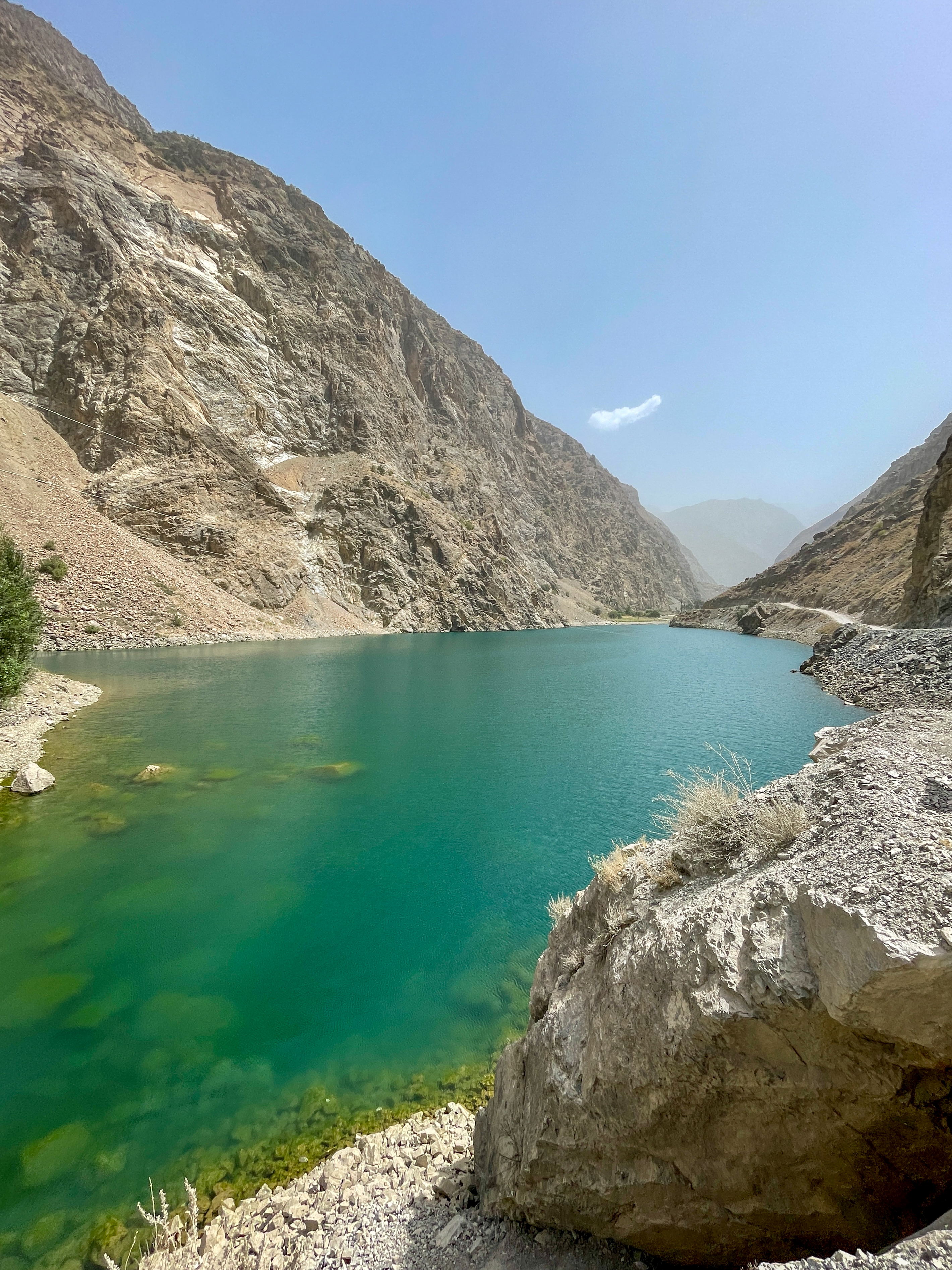 Afterwards, we headed to the bazaar to pick up some snacks for our lunch later, then were back in the bus headed to Iskanderkul, a lake named for Alexander the Great – that man had been everywhere!! Just like the previous day, the landscapes were incredible. Apparently the water in the lake is very high in calcium, copper, lead, and various other salts, so there’s nothing living in it, but this also causes it to be a really bright, light blue colour which is very pretty.