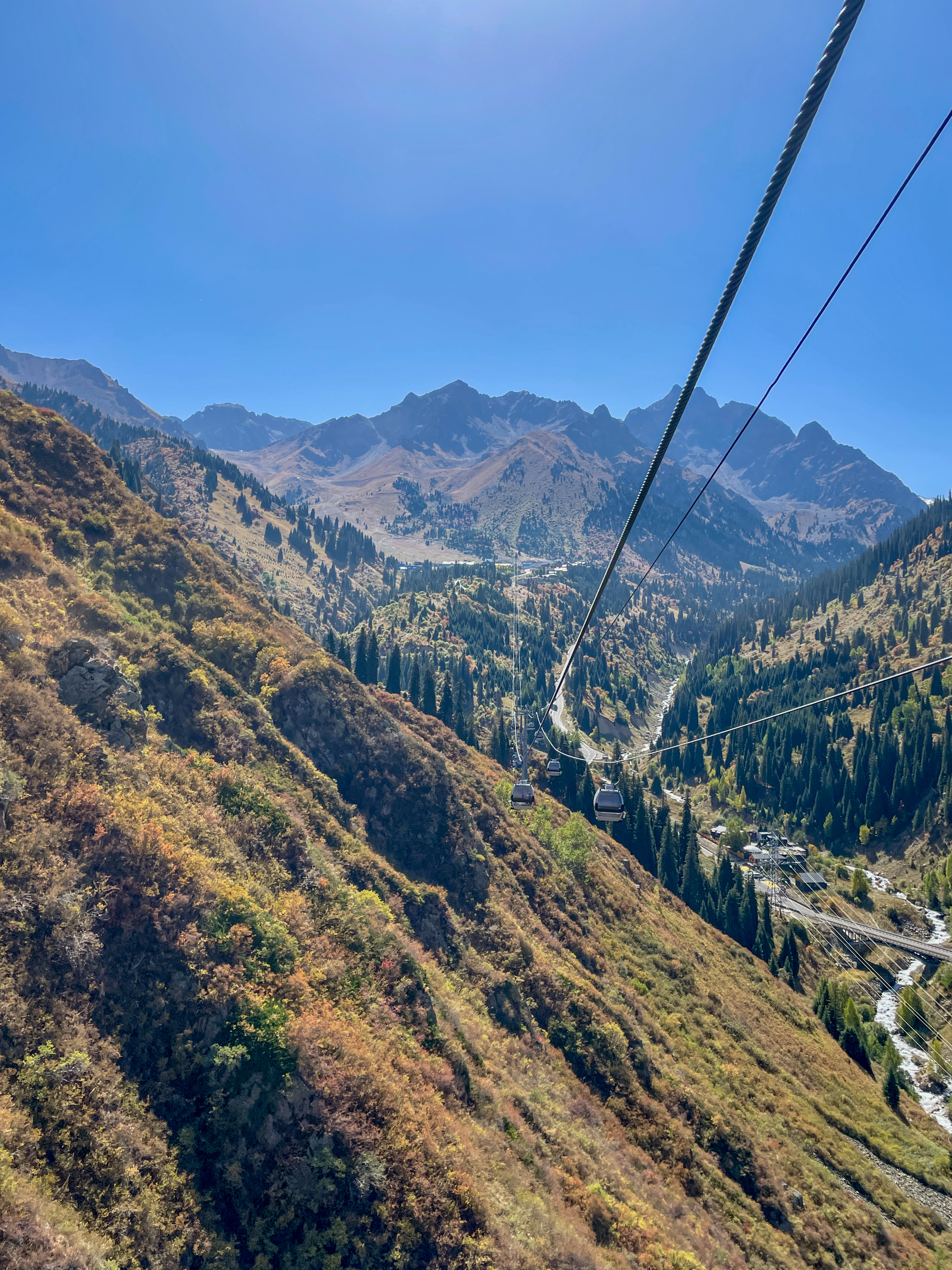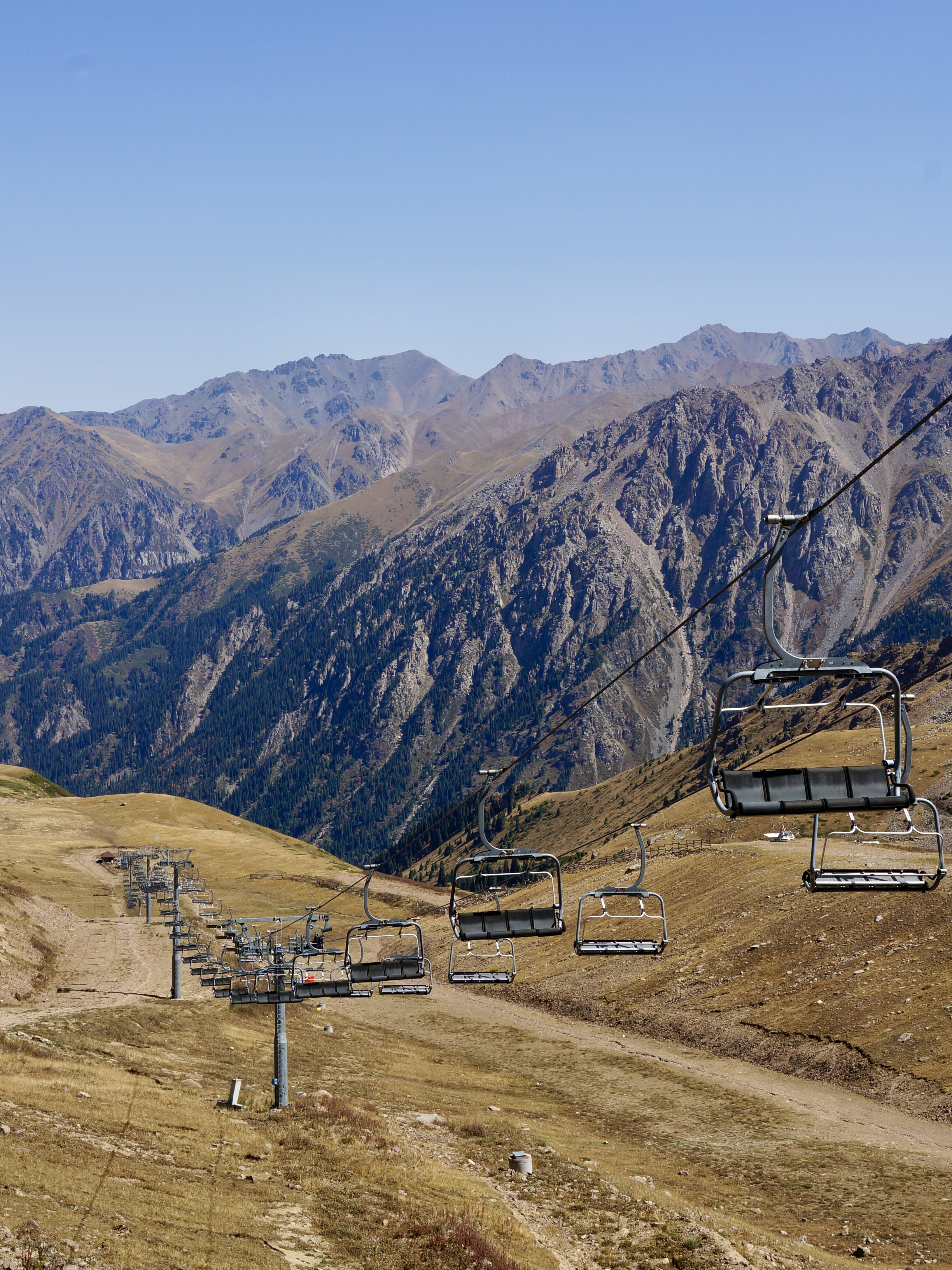 Our second day in Almaty was the last day of the group trip, and we spent it on a tour of the city. We began at Medeu, said to be the highest altitude full size ice skating rink in the world at 1700m above sea level. From there, we took a series of cable cars up to Shymbulak, Central Asia’s largest ski resort, with the last cable car taking us up to an elevation of 3200m (Almaty itself sits at around 800m above sea level). We had been warned to take warm clothing so we all went with jumpers and jackets, and then found ourselves up the mountain in a balmy 20-something degrees!