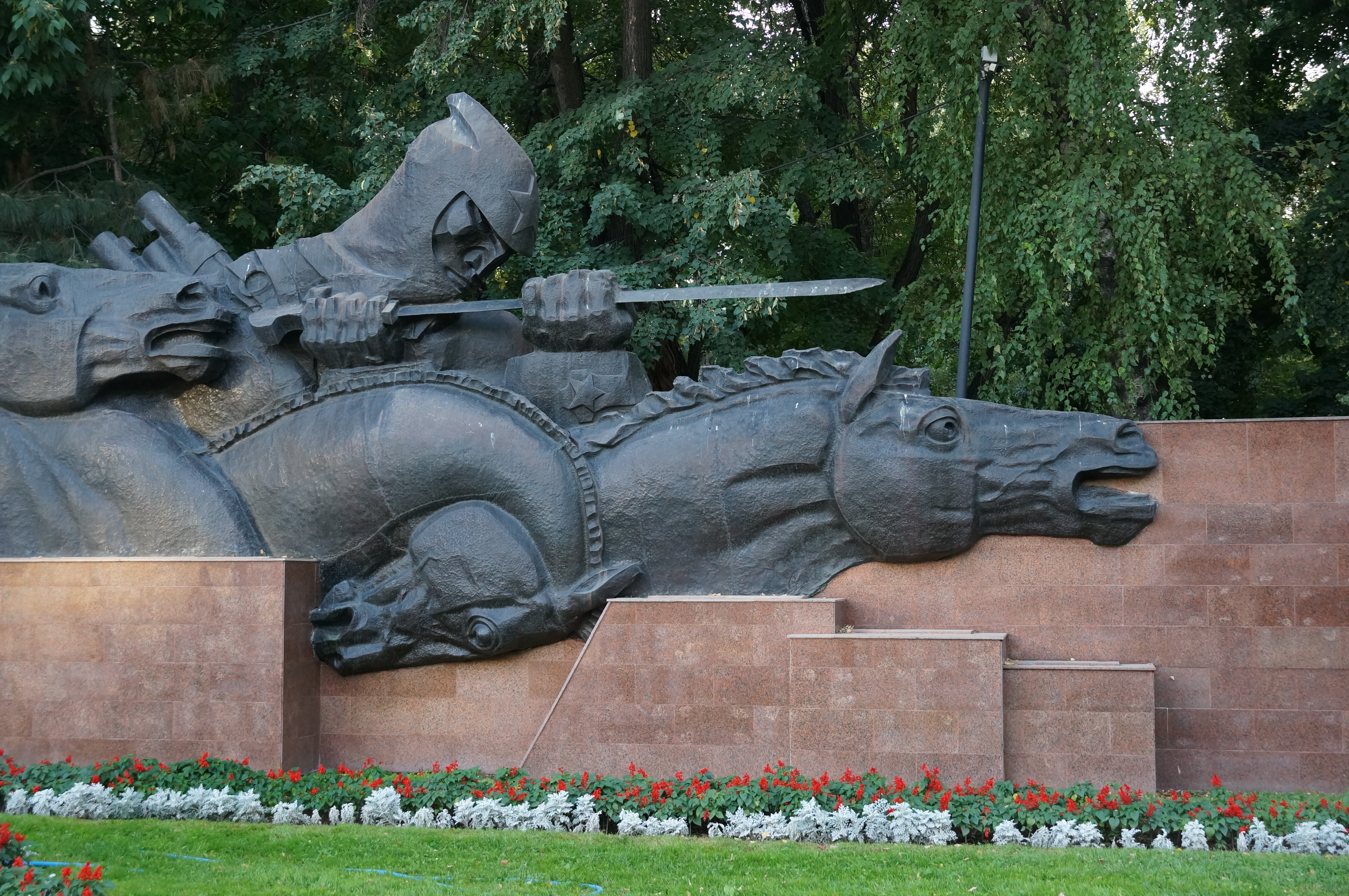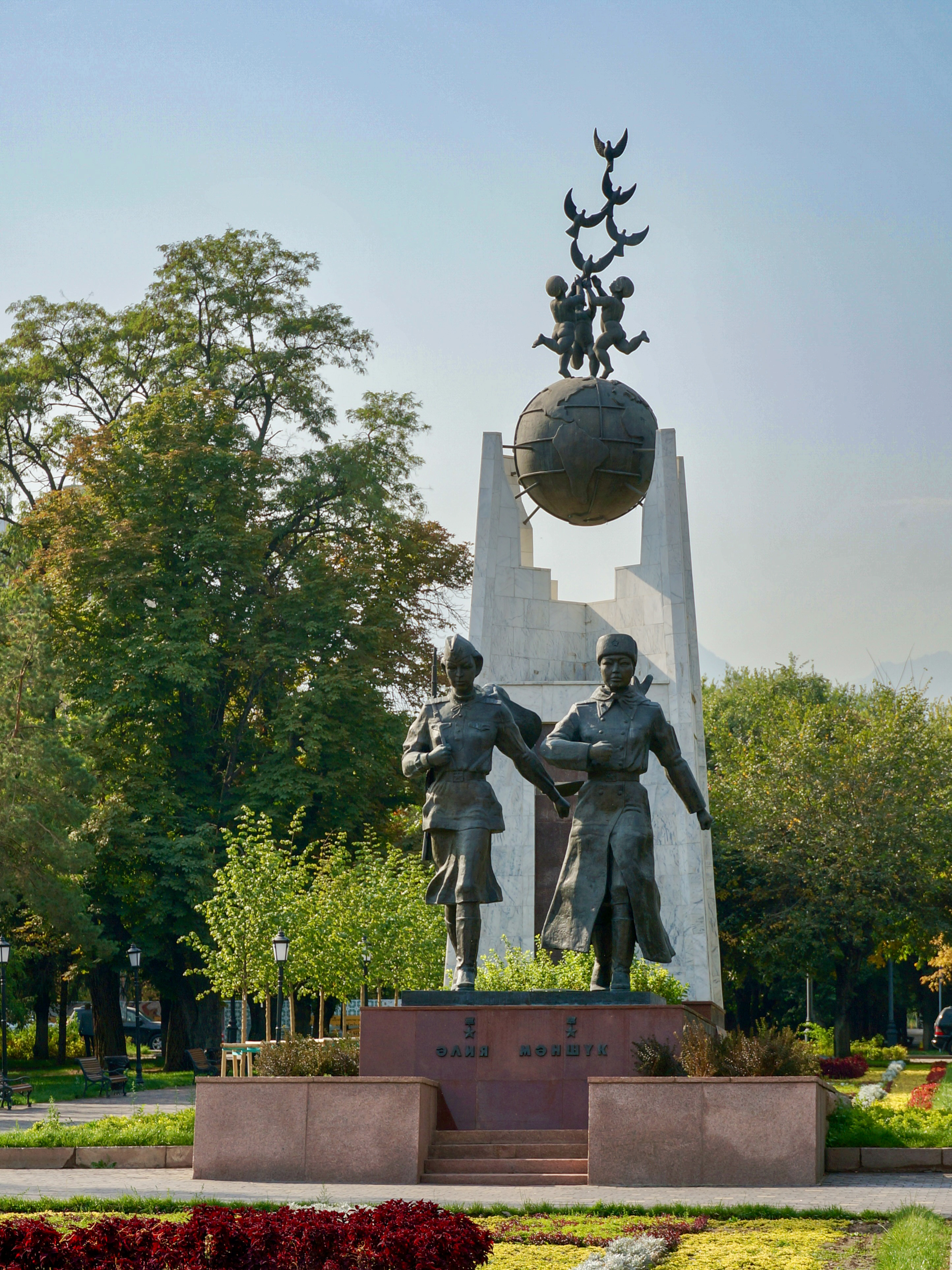 Our final stop was Panfilov Park, with its military memorial to the 28 Guardsmen from the region who died in World War Two. The park itself used to be a cemetery, but has been used as a public park for the past 100 years or so. It also contains the famous Ascension Cathedral, a pretty, colourful, wooden Russian Orthodox church. It is said to be the second tallest wooden church in the world, and there are claims that it was built without nails, though this is more a technicality than anything, as it contains metal staples and even bolts.