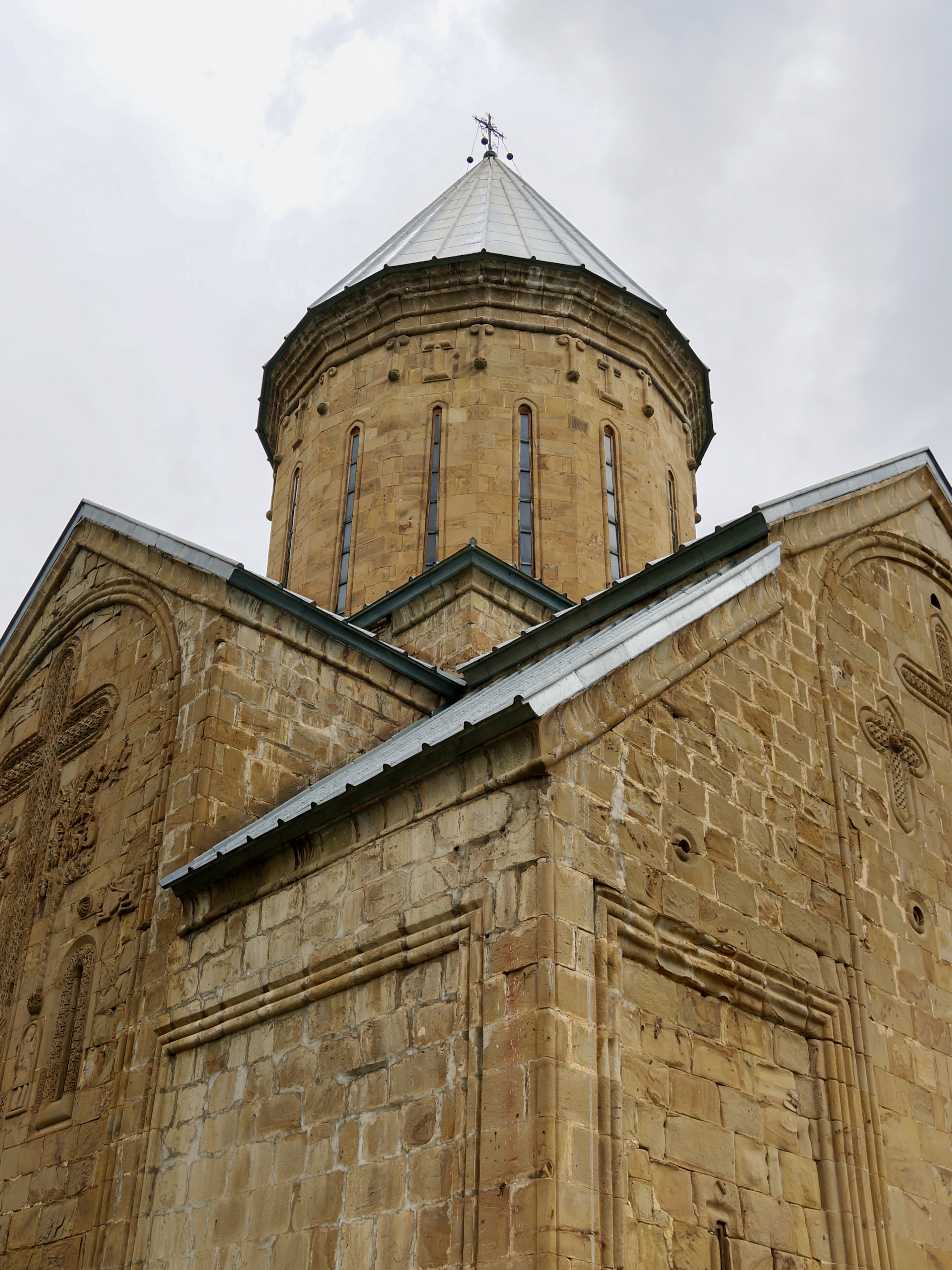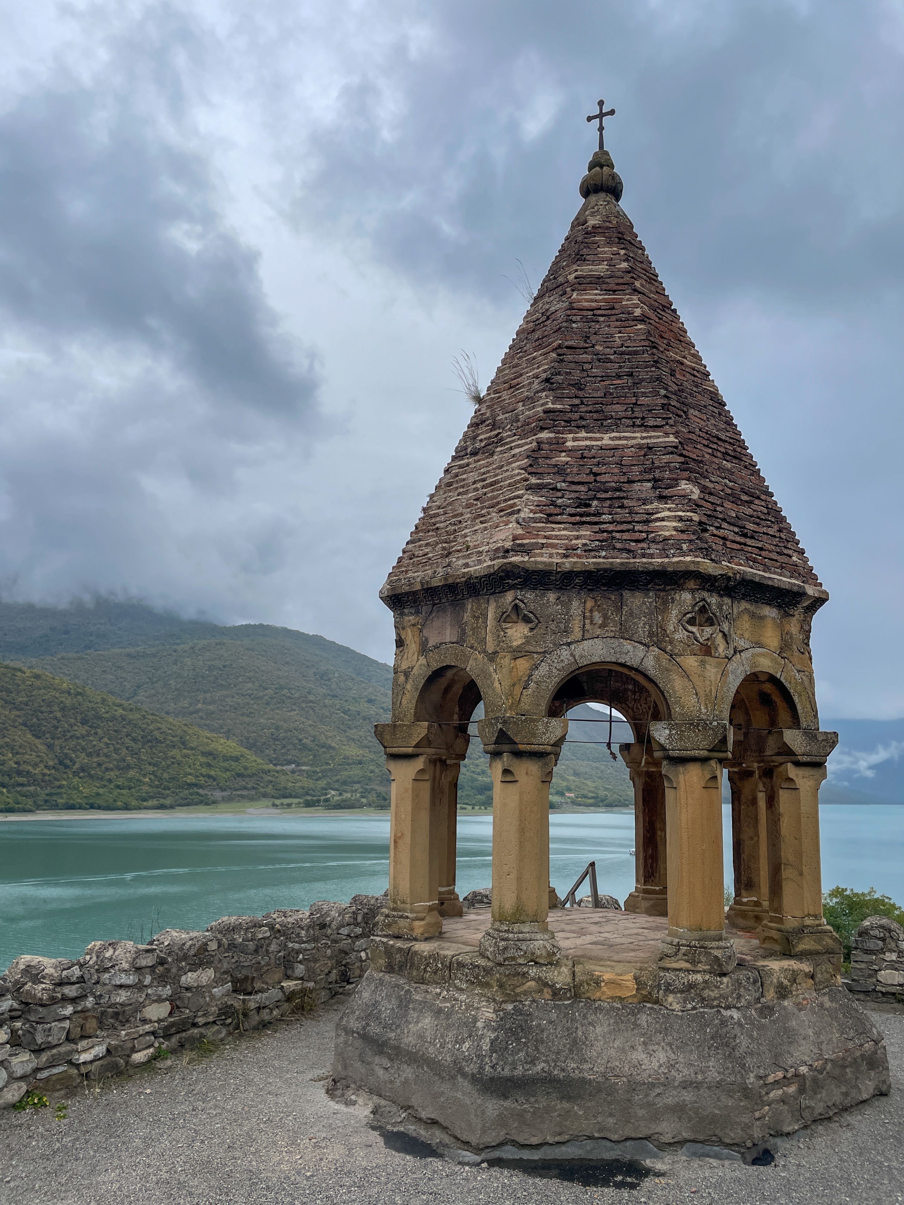 The first stop was at the Ananuri Fortified Castle Complex. It looks out over Zhinvali Reservoir, which was created by damming the Aragvi River in order to provide drinking water to Tbilisi. The castle is named after a woman who was captured during one of the battles in the area and refused to give up knowledge of the secret tunnel into and out of the fortified area, instead dying as she was tortured for the information.