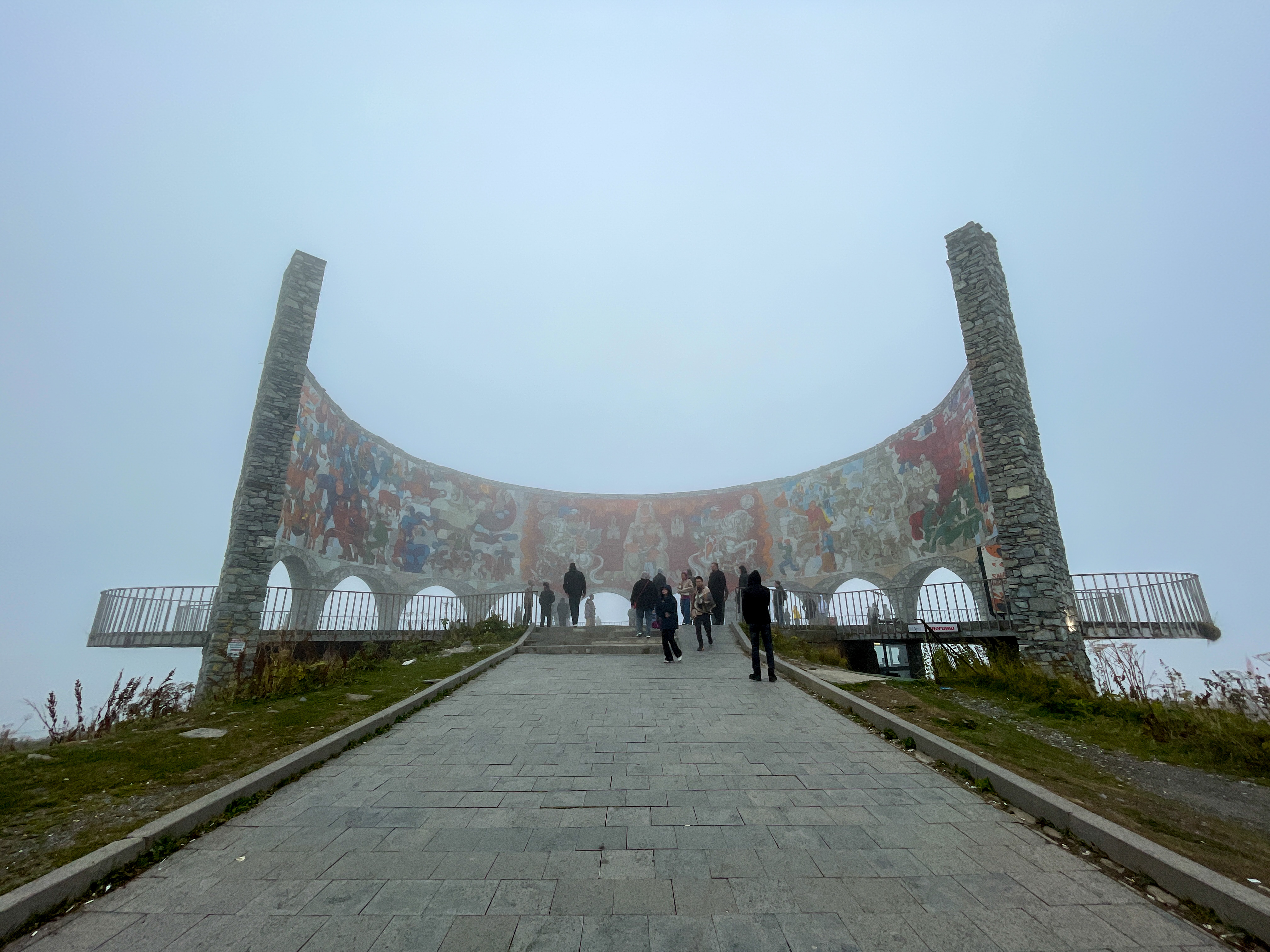 We then briefly visited the Russia-Georgia Friendship Monument, a round mosaic covered structure, that you could hardly see flee the fog, before arriving in Kazbegi. The weather was pretty miserable by this stage and the tour guide did his best to convince me that I’d probably be happier going back to Tbilisi, but I had made my decision and I was going to see it through!