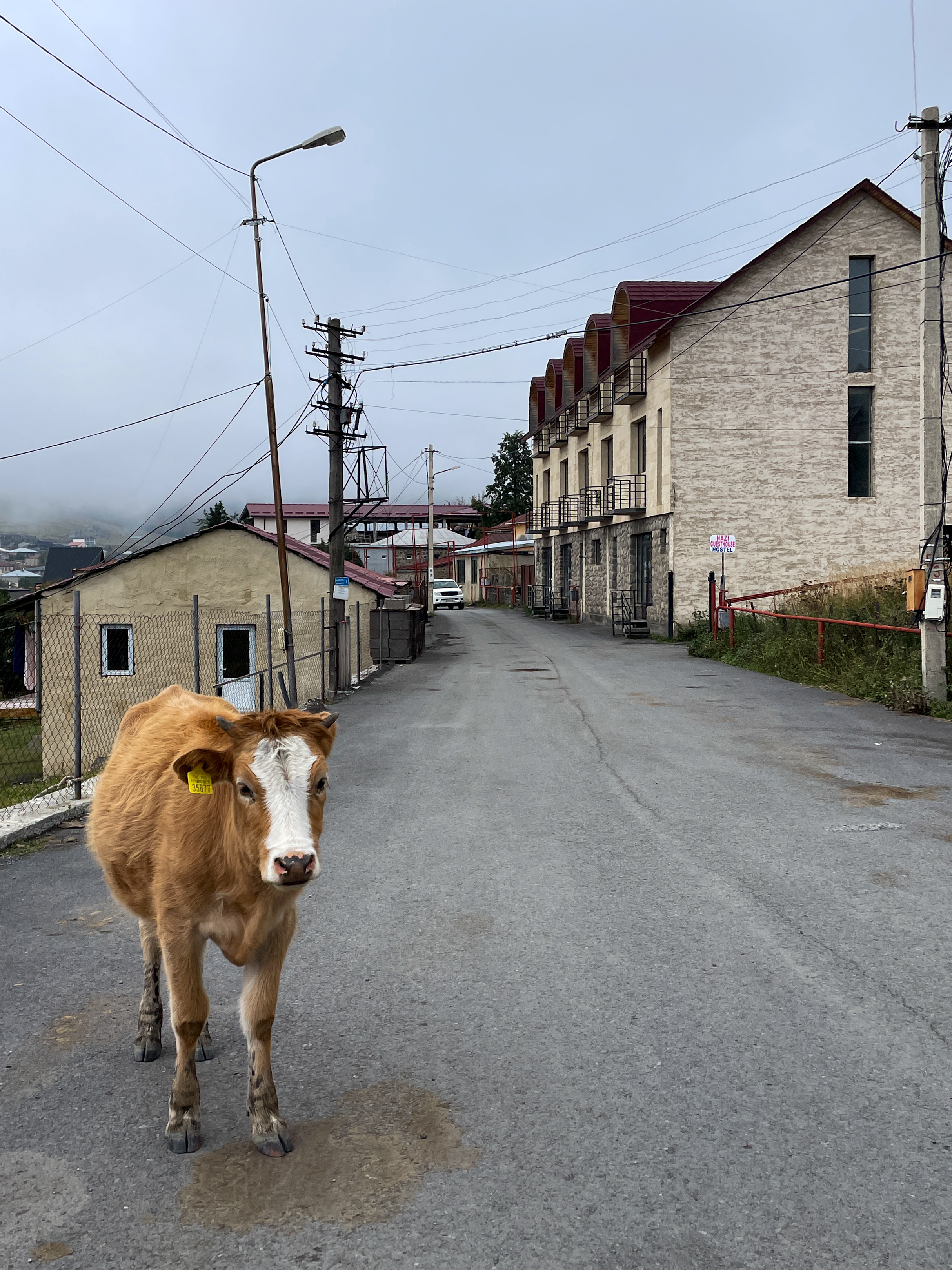 We made it to Kazbegi and made one final stop at the church that the town is quite famous for and then I was dropped in the middle of town with a final chance offered to change my mind. I declined, of course, and set off to find my hostel. Google maps took me along a rather interesting route to get there, as you can see in the photo, and I also encountered a number of apparently free range cows along the way. The hostel was essentially just someone’s home with a whole lot of beds in each room, but it was warm and cozy, and I felt very welcome.