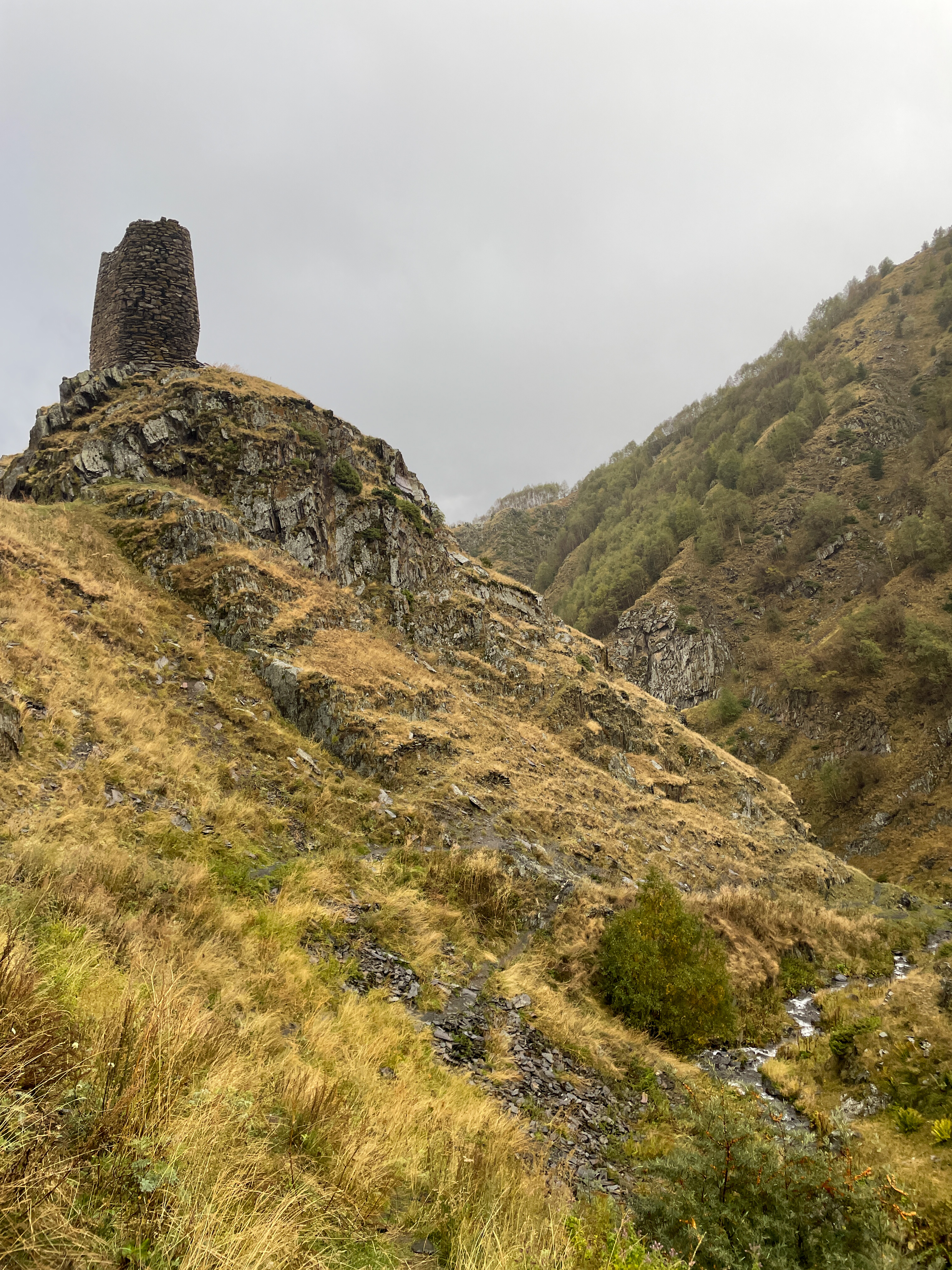 To get there you need to drive up the Georgian military highway, a rather scenic route. A marshrutka, or public transport minivan, costs 15 lari and gets you there in around three hours. I’d read that there are some interesting places along the way though so I got in touch with one of the day trip organisers and asked if I could bring my luggage and just have them leave me behind at the other end – they seemed ok with that! We stopped at several places along the way, including Ananuri, Gudauri, and the Russia-Georgia Friendship Monument.