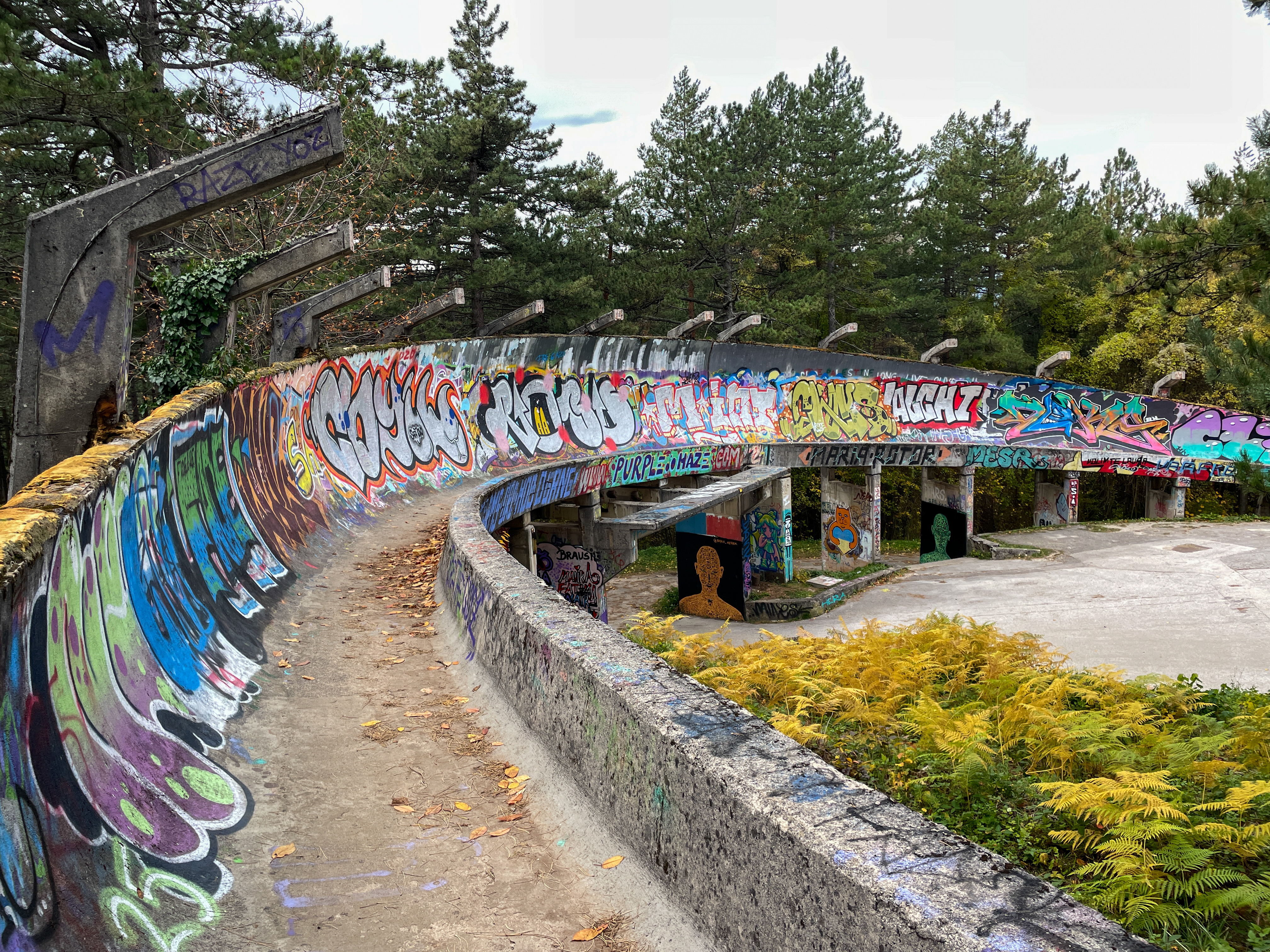 I had a nice time in Sarajevo, exploring the city, visiting museums, and eating lots of cevapi. It’s very different from what I had seen until now of the ex-Yugoslav states; it almost felt like I was still in Turkey with the mosque and the coffee shops and the selection of products in the stores. The highlight, however, was definitely taking the cable car up the hill to the old bobsled track left over from the 1984 Winter Olympics. It’s totally in ruins, as it was used for shelter during the war in 1995, but you can walk down it, and it is covered in graffiti which makes it pretty interesting. At the bottom of the track, there’s a path through the trees that takes you up to an abandoned observatory that was also used during the war and is now covered in bullet holes (and more graffiti).